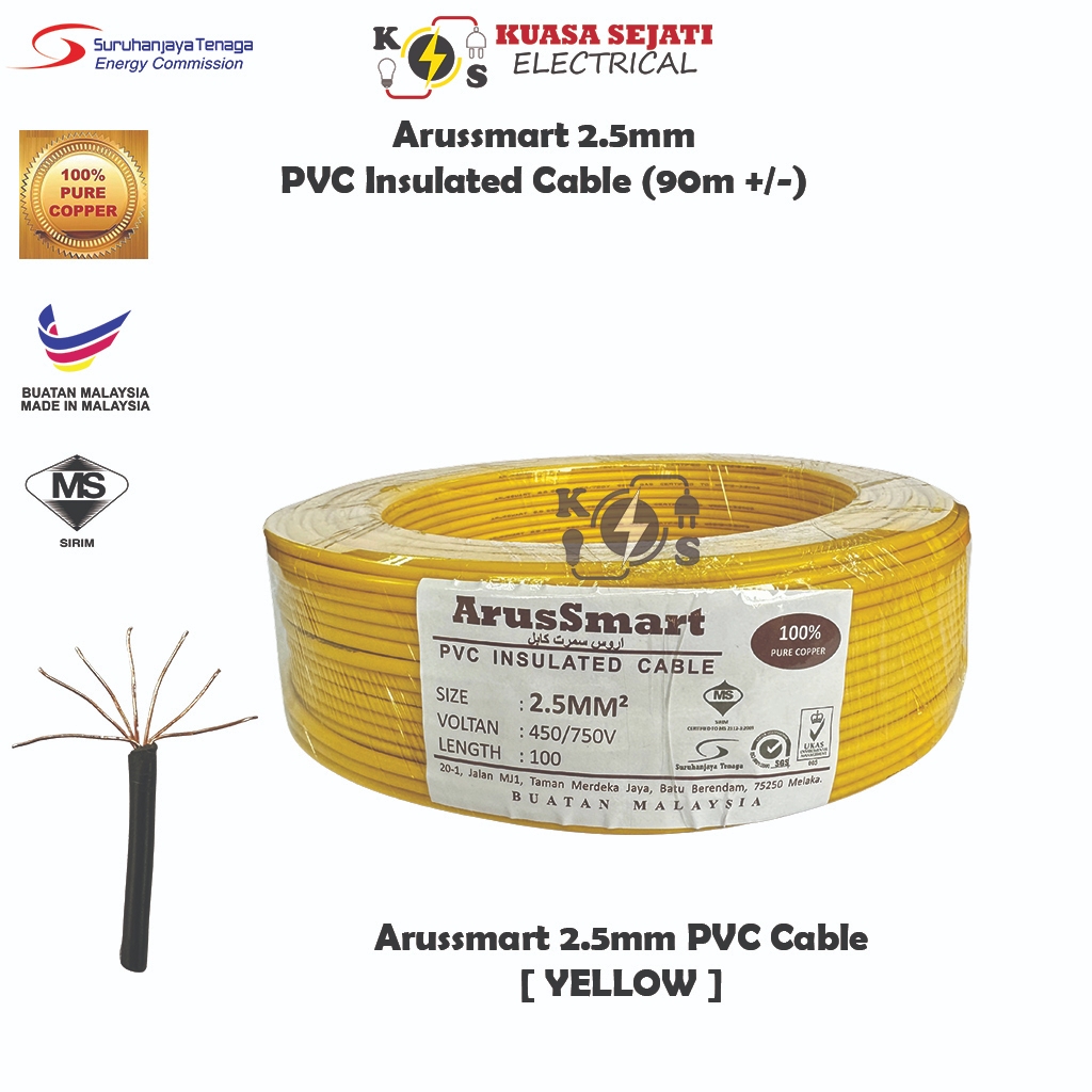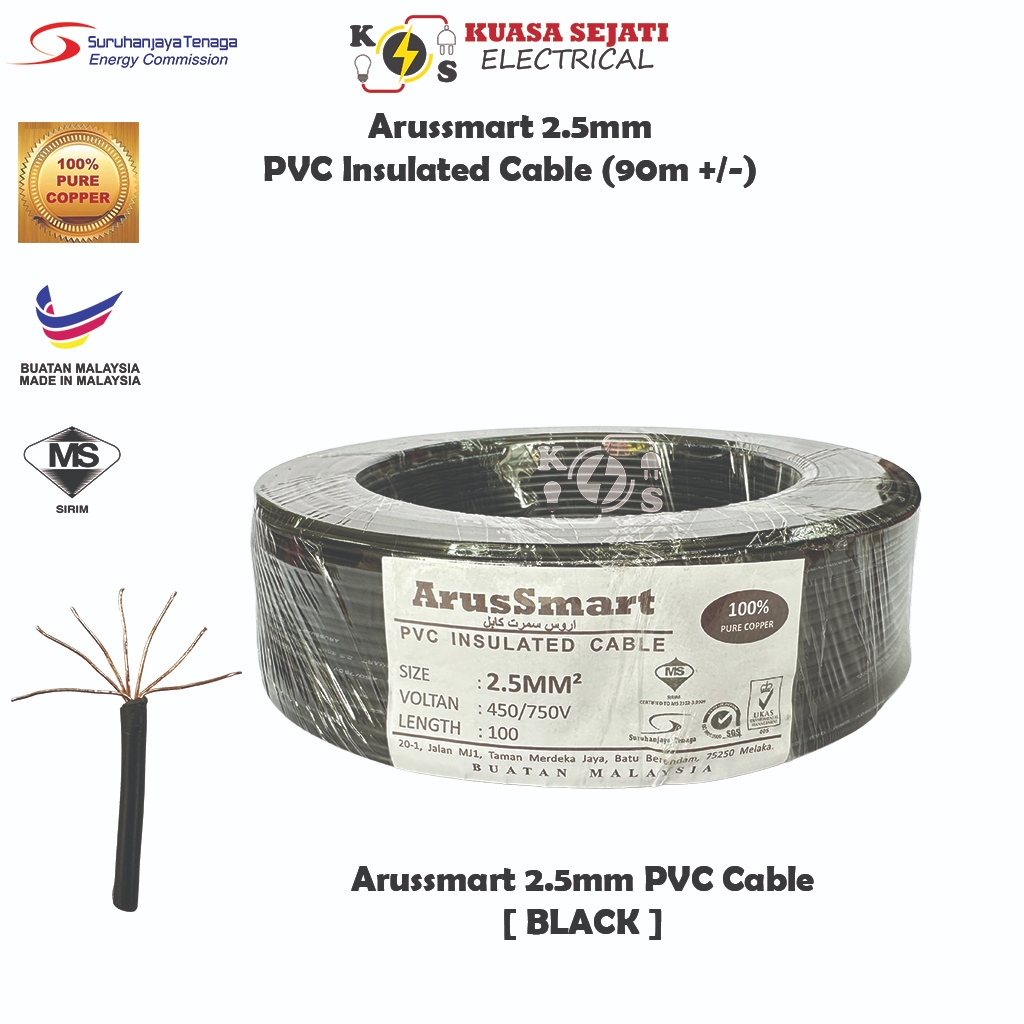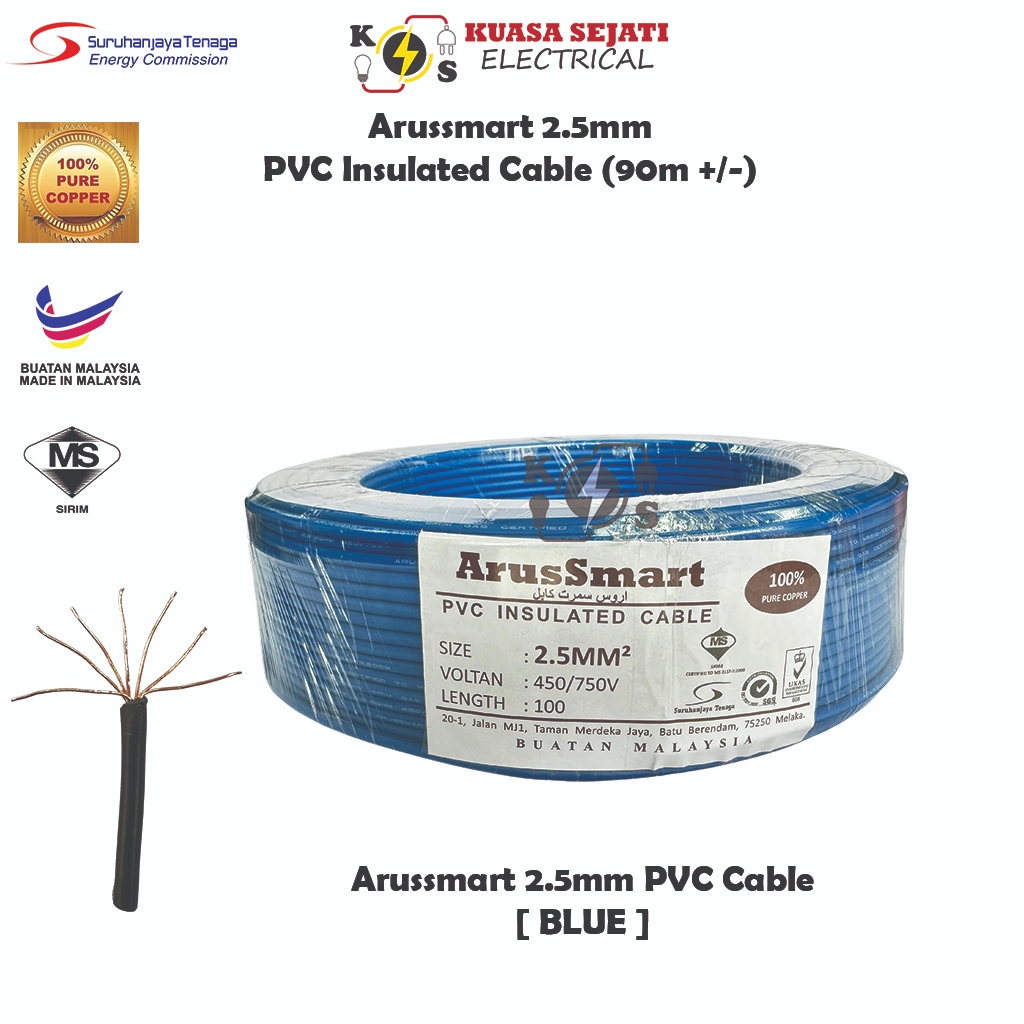 ARUSSMART 1.5mm / 2.5mm PVC Insulated Cable / Wiring Wire (SIRIM) - 100% Pure Copper