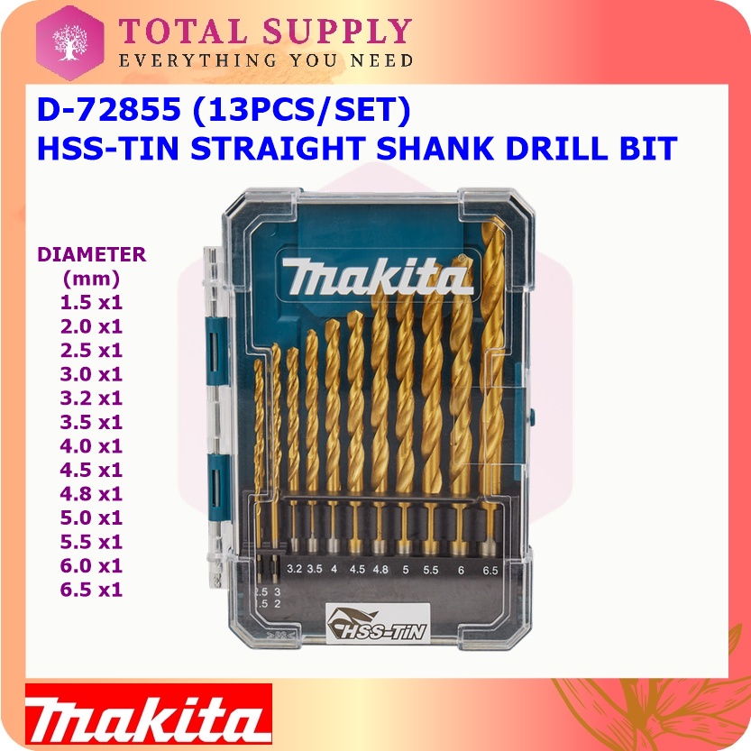 D-72855 MAKITA (13PCS/SET) HSS-TIN STRAIGHT SHANK METAL DRILL BIT SET 13 PIECES SET MAKITA 72855