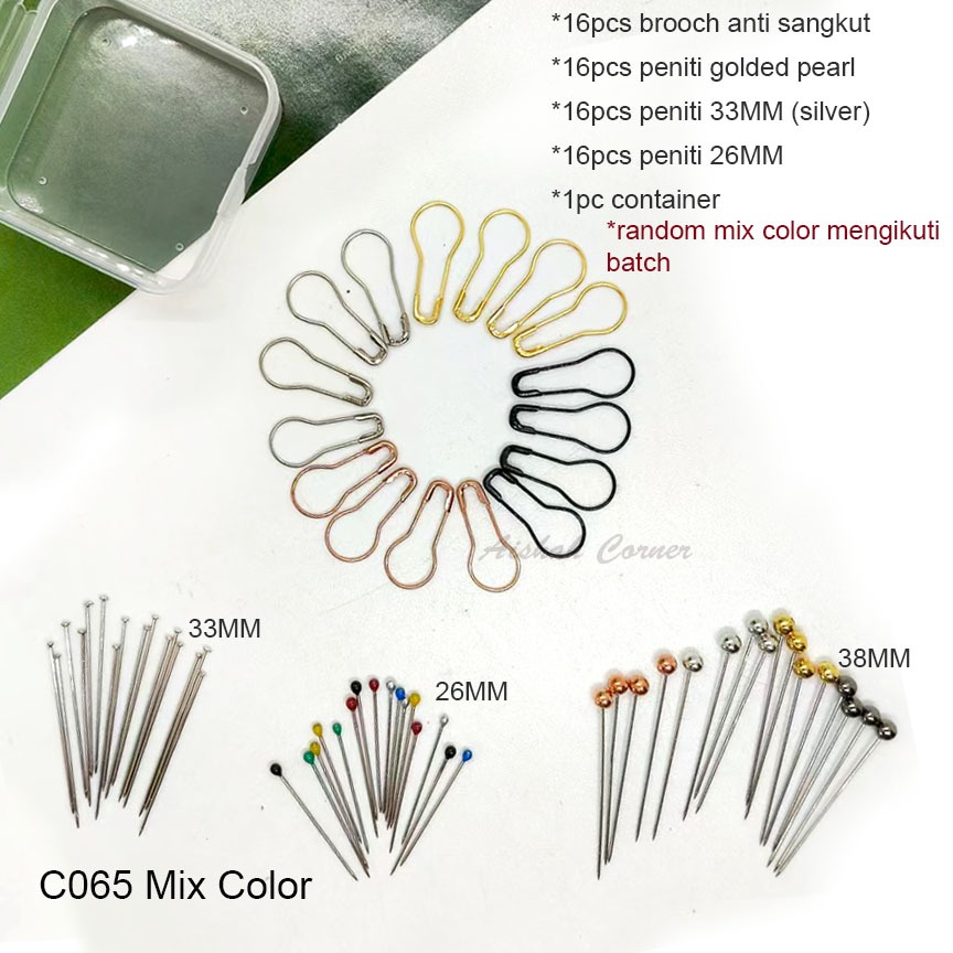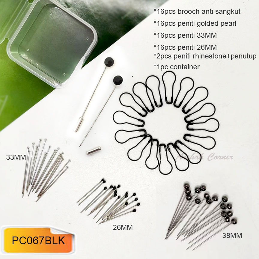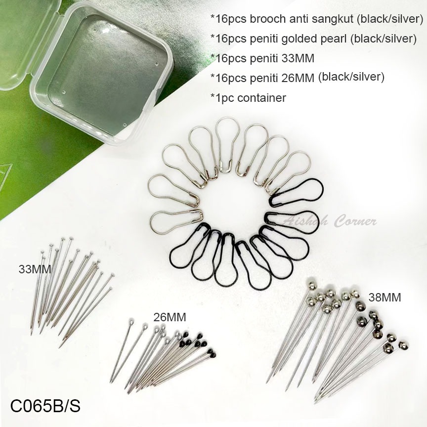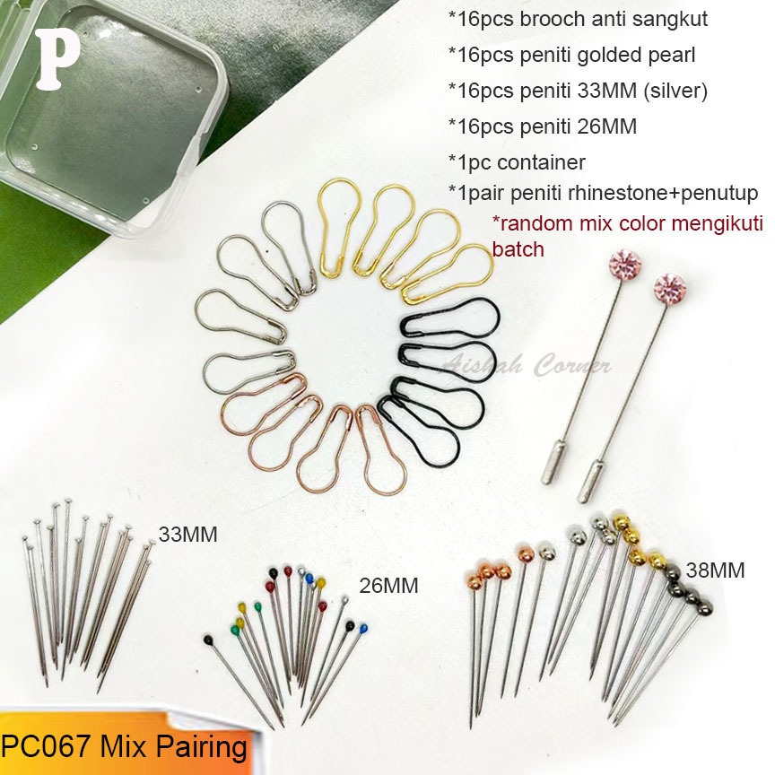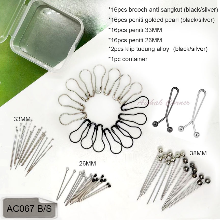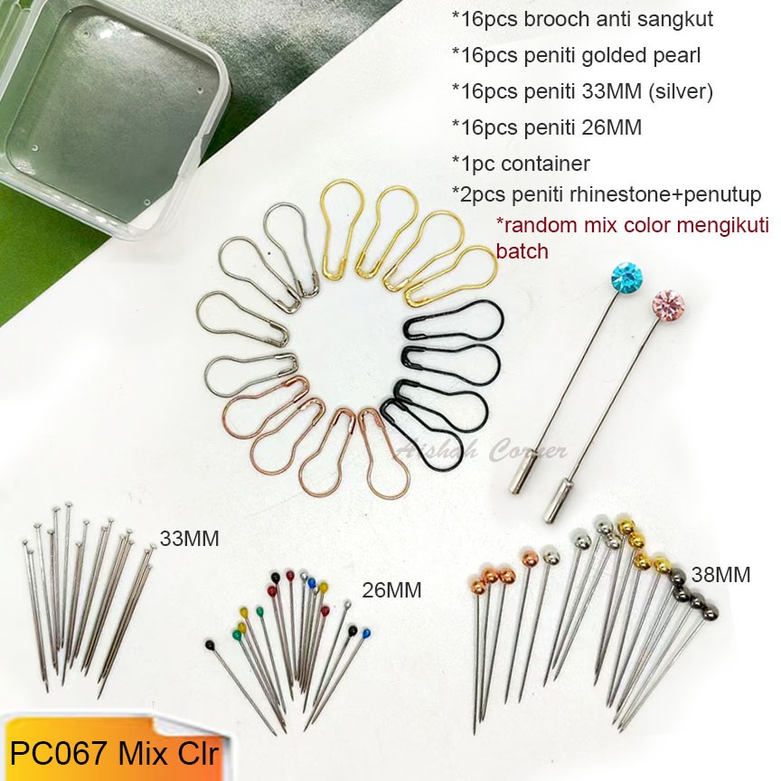 TRAVEL SET PIN TUDUNG(65/67 PCS SET) Hijab Pin Peniti Brooch Anti Sangkut /Container Hijab Pin Set Hijab Magnet