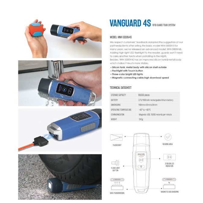 JWM5000V4S/5000V5 IP67 RFID Guard Tour Patrol System with Free 20pc 125khz RFID tags and 2pc Guard ID