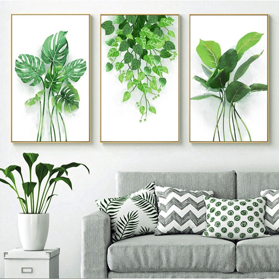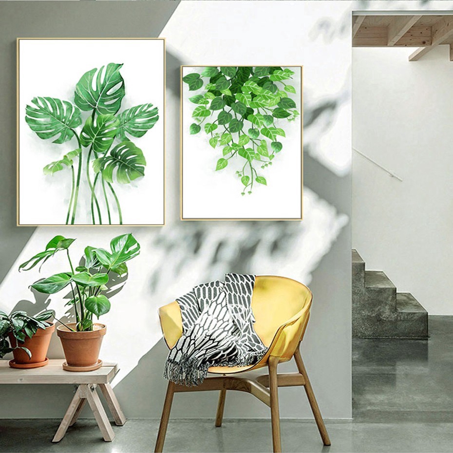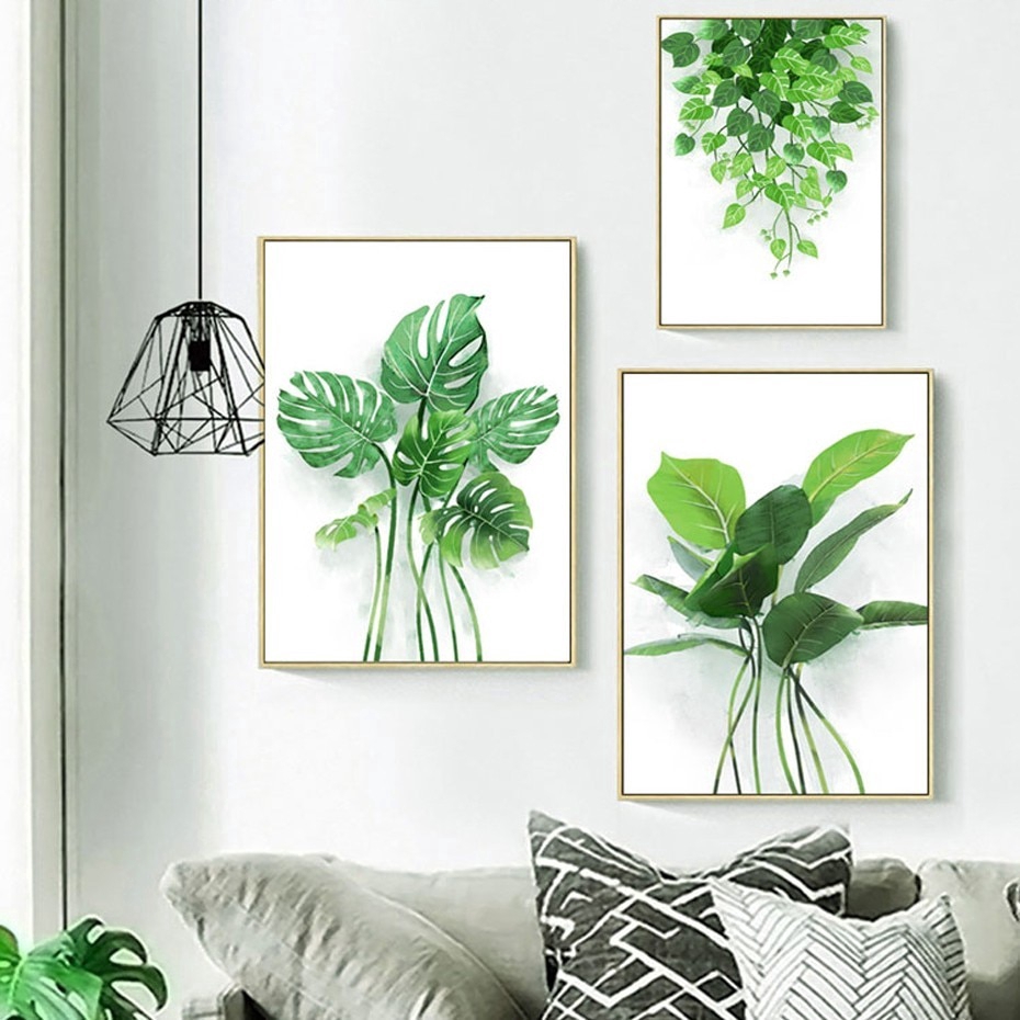 Nordic Green Refresh Minimalist Leaves Canvas Poster Print Pictures No Framed Wall Decoration