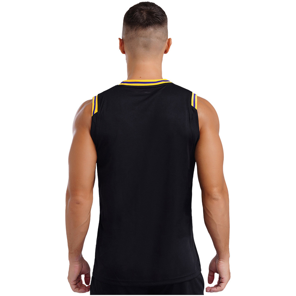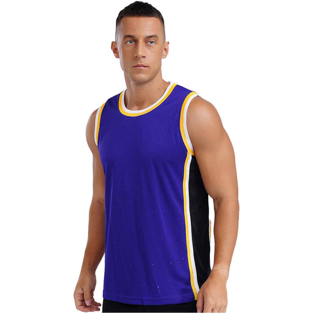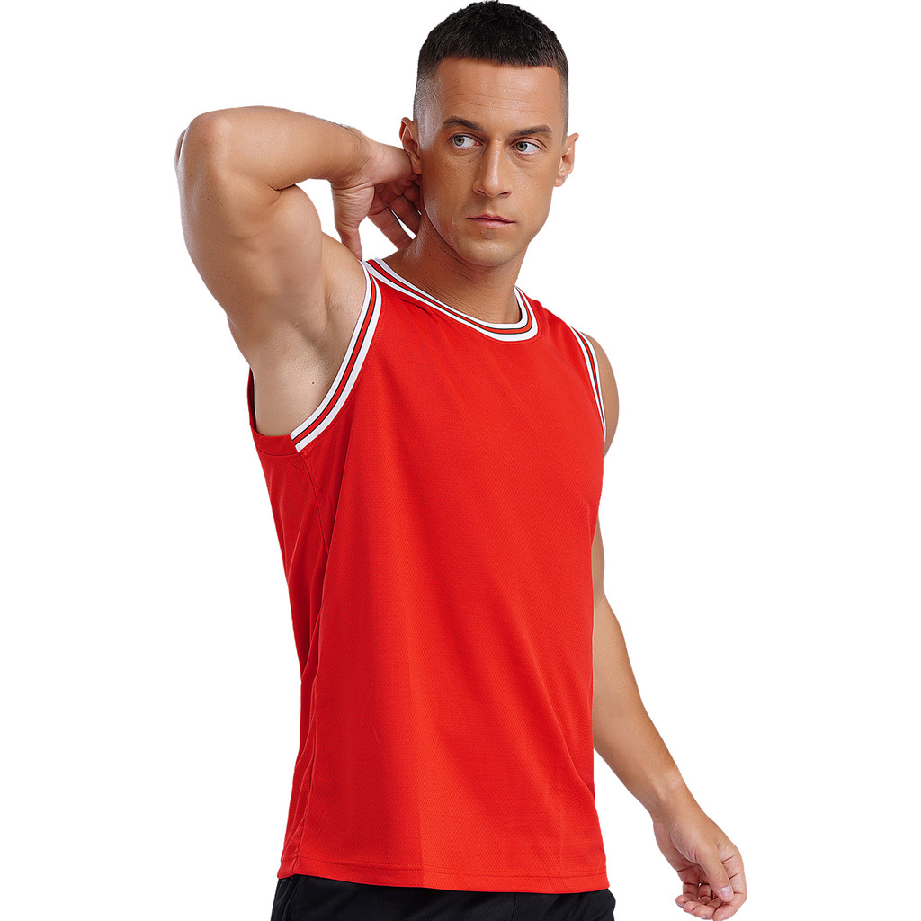 inhzoy Mens Basketball Jersey Vest Round Neck Sleeveless Contrast Trim T-shirt Workout Sports Tank Top