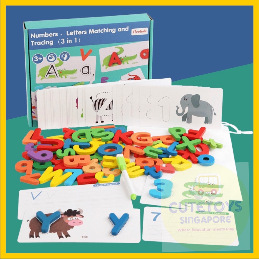 [SG STOCKS] Montessori Kids 3in1 Numbers, Letters Matching & Tracing Math Game (Treehole)
