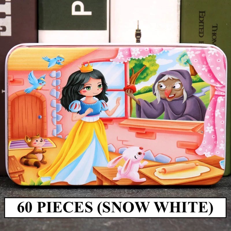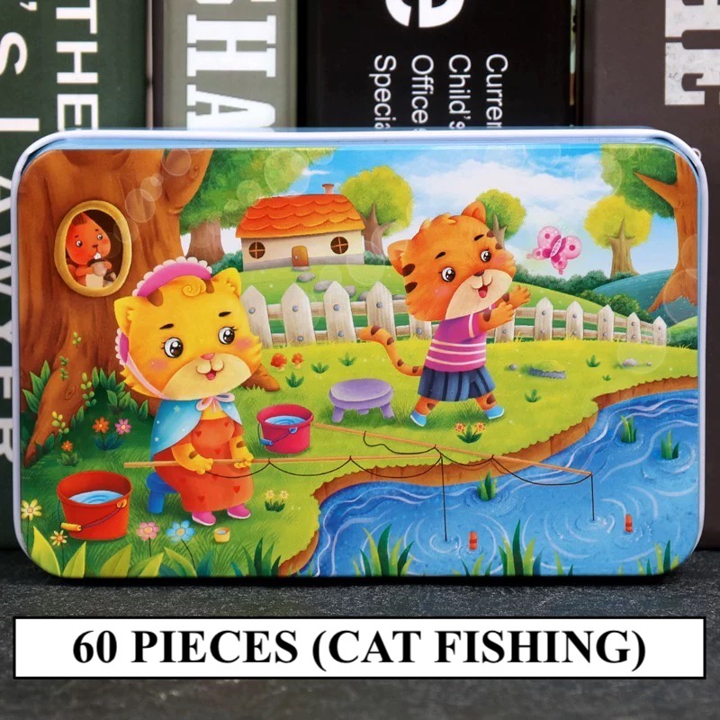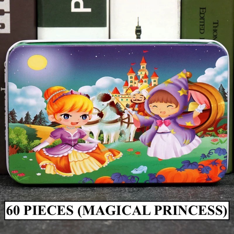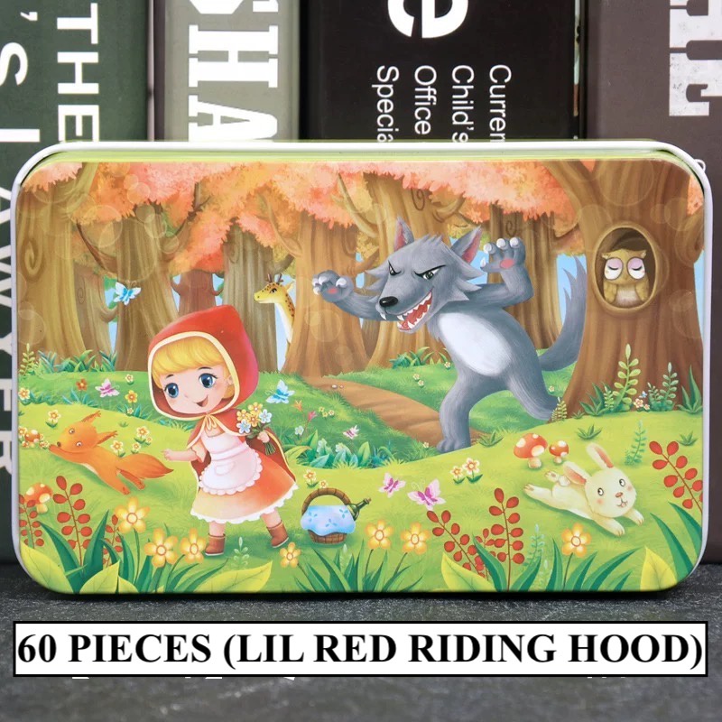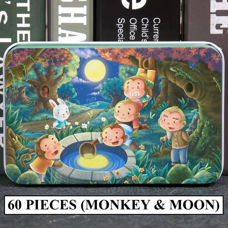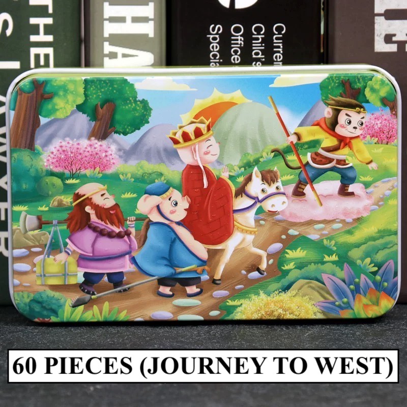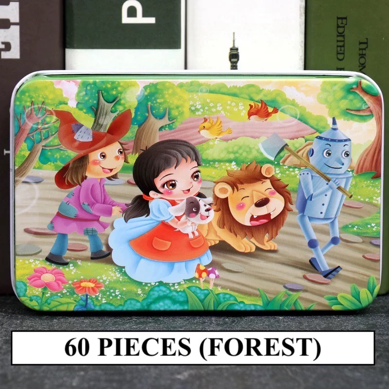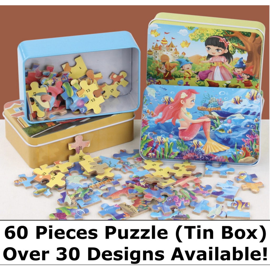 [SG STOCKS] 60 Pieces Cartoon Wooden Jigsaw Puzzle (Tin Box) 30 OVER DESIGN! Kids Educational Birthday Party Gift Set