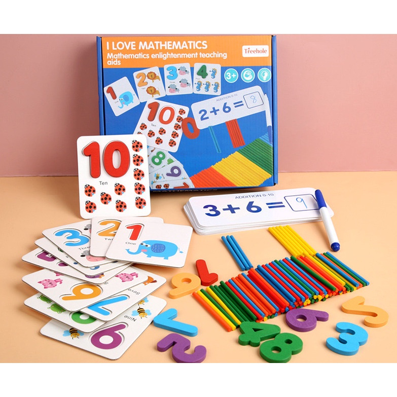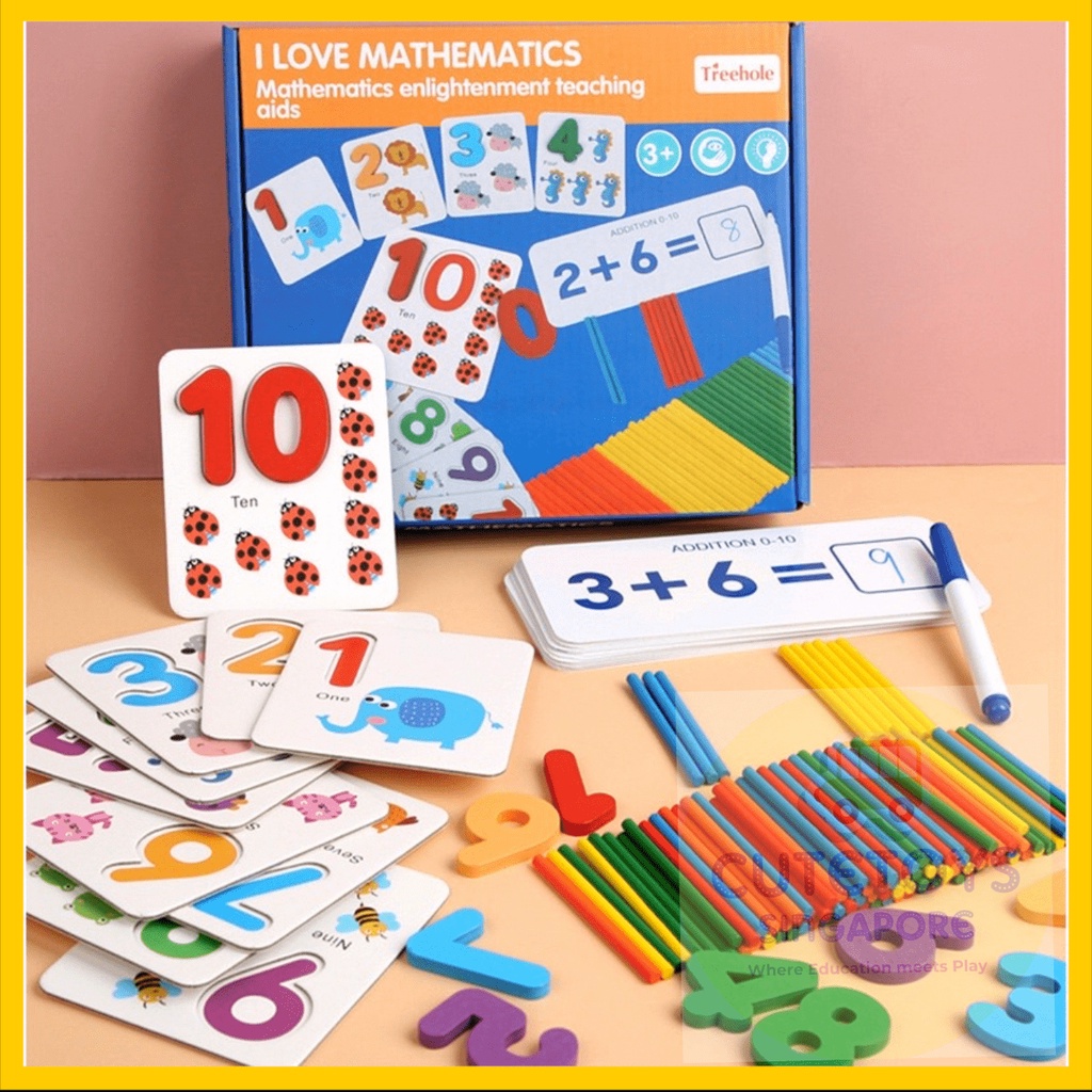 [SG STOCKS] Montessori Kids Maths Flash Card (with Wooden Number / Matching Problem Sums Cards /Counting Sticks)