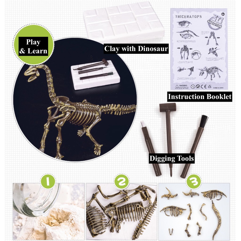 [SG LOCAL SELLER] DIY Dinosaur Excavation Set Fossil Clay Sand Skeleton Education Learning Digging Surprise Kids Toys