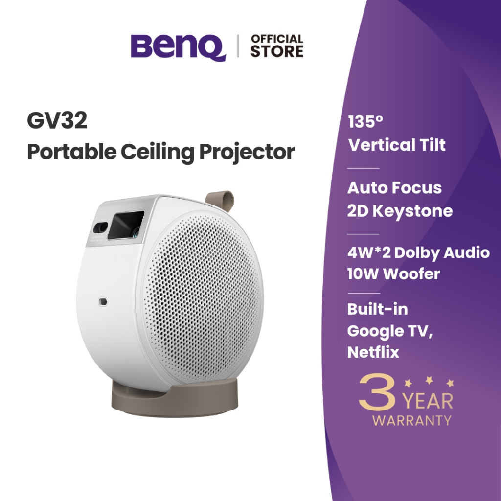 BenQ GV32 FHD Ceiling Projector 500lm, 135° Rotation, Dolby Audio+Woofer, Google TV, Airplay, 3 Year Warranty