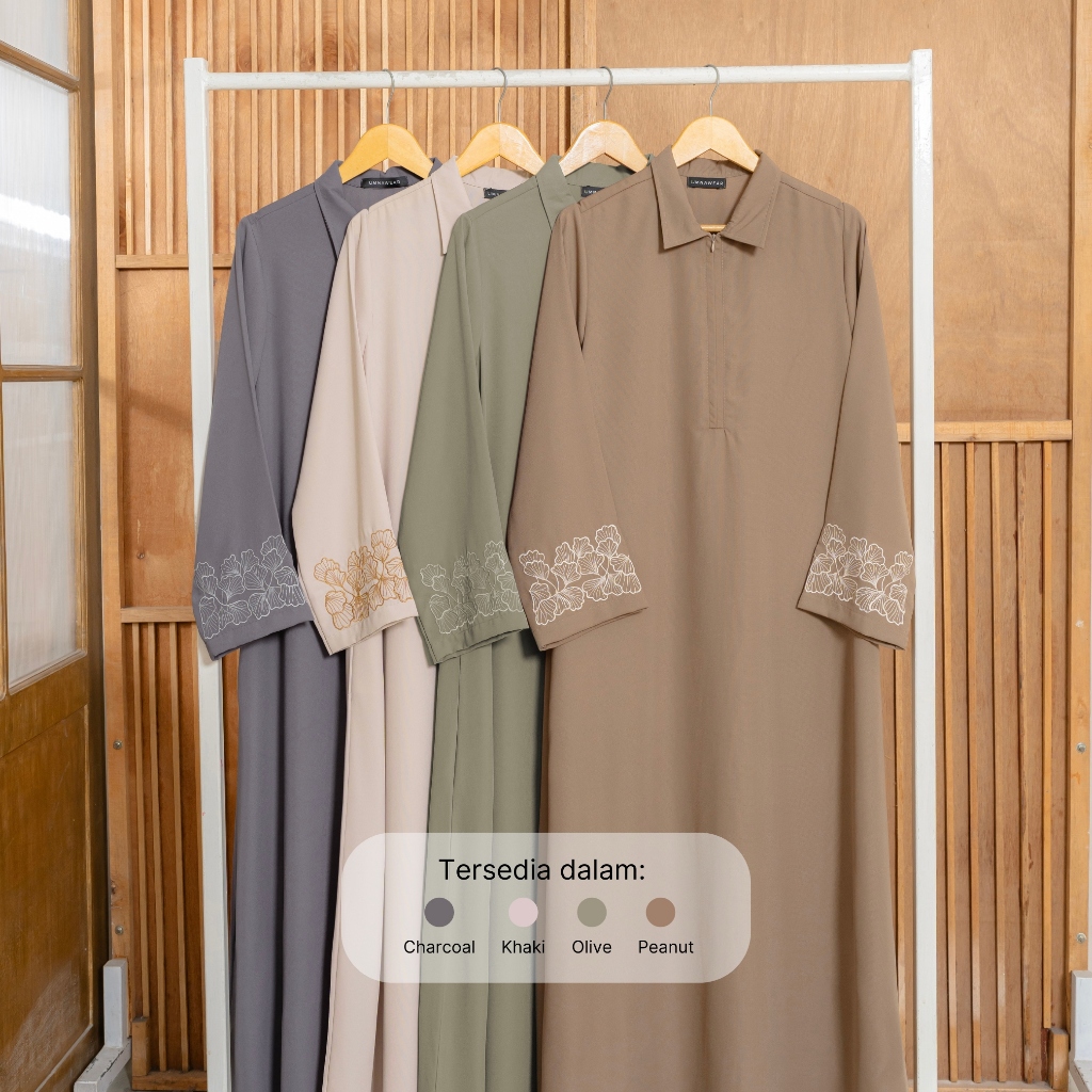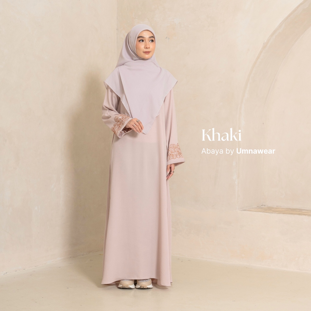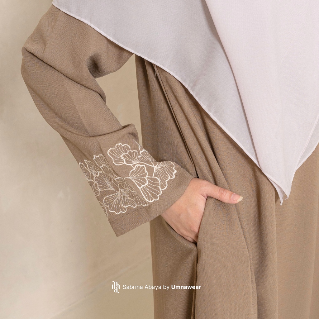 Sabrina Abaya with Simple Premium Embroidered Sleeves, Eid Dress, Natail Syari Umrah Material By Umnawear