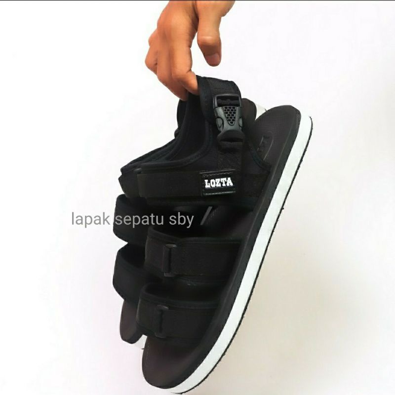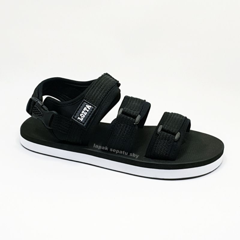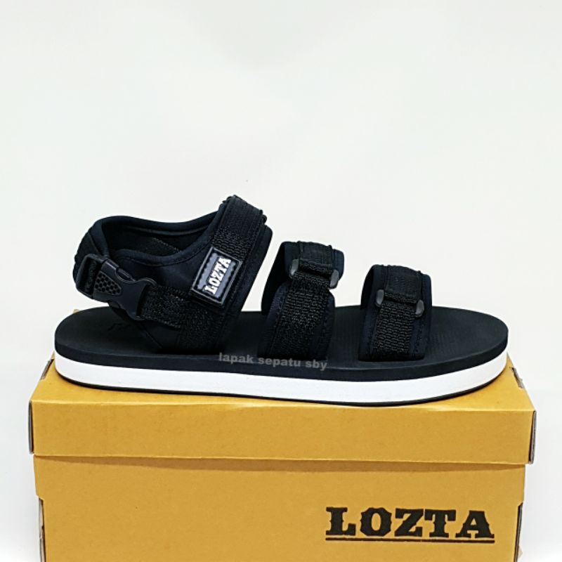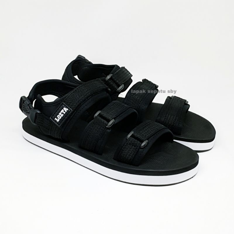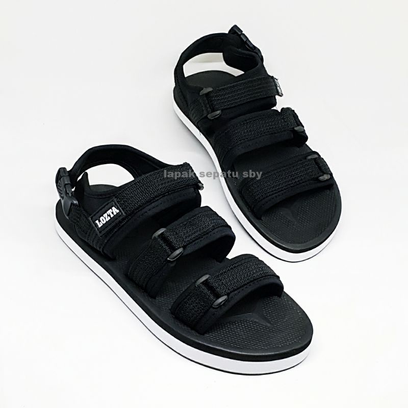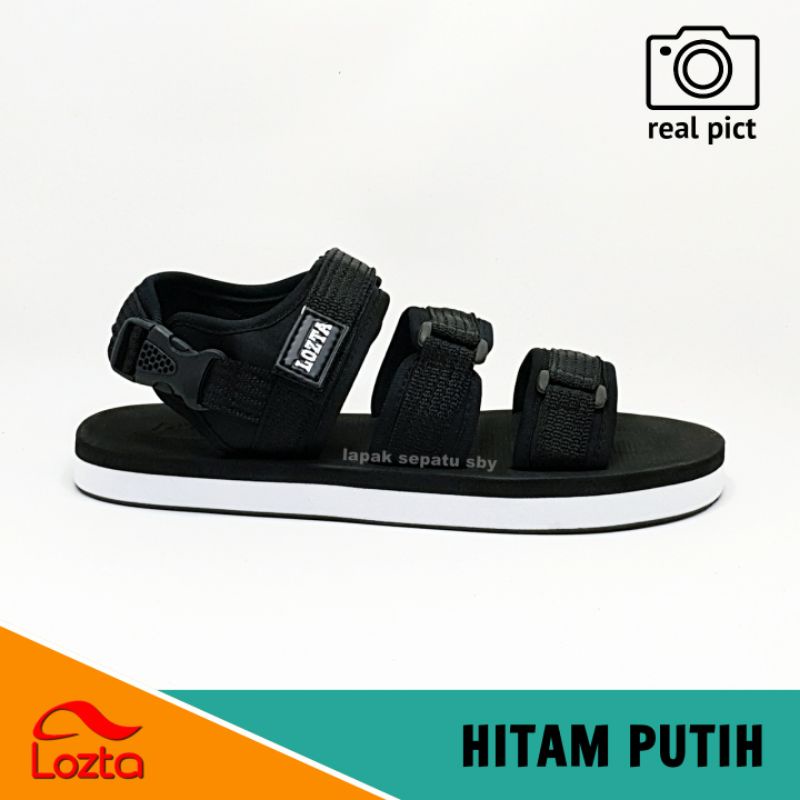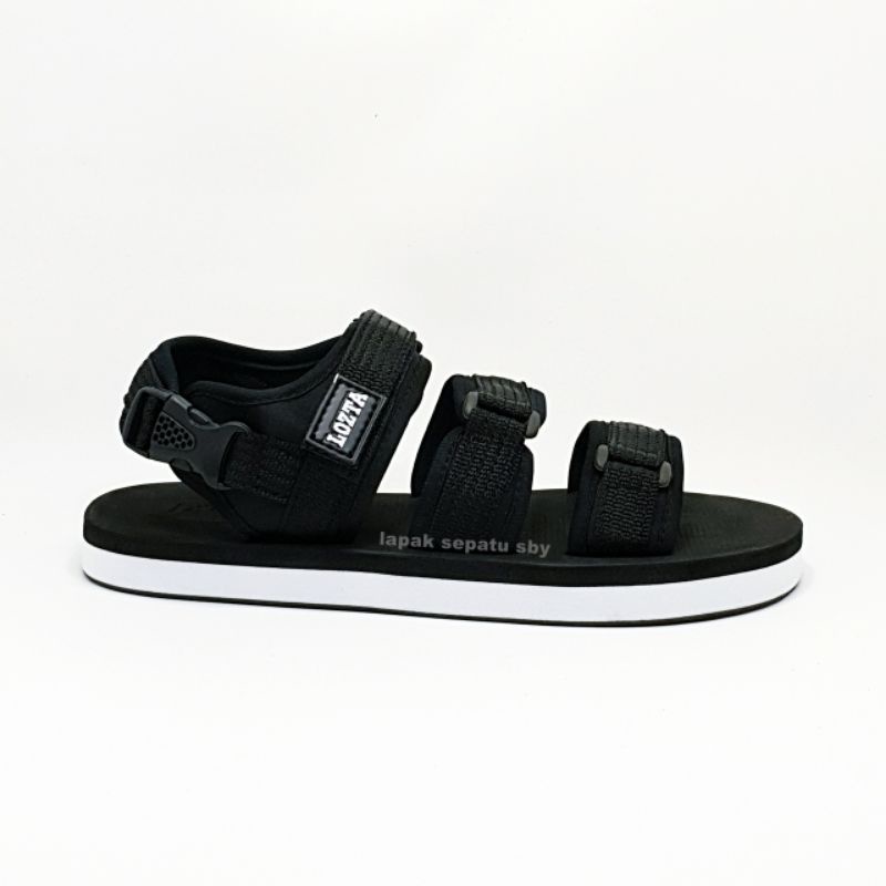 Original Lozta AS 03 Black White Men's Sandals 3 Strap Velcro Strap Sandals