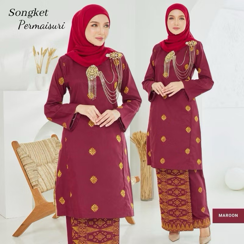 BAJU RAYA 2025 VIRAL SONGKET Woven KURUNG PAHANG COTTON PLUS SIZE Women BRIDESMAID | AMINAH (XS - 3XL) Songket Kurung