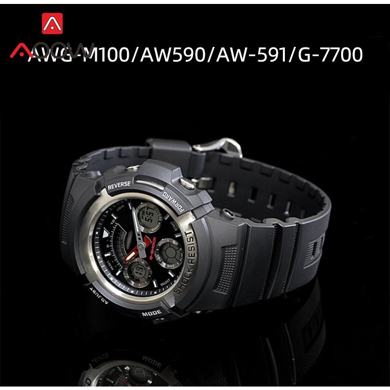 Resin Strap for Casio G-SHOCK AW-591 AW-590 AWG-M100 101 Men Sport Waterproof 16mm Replacement Bracelet Band Watch Accessories