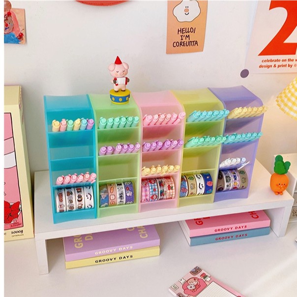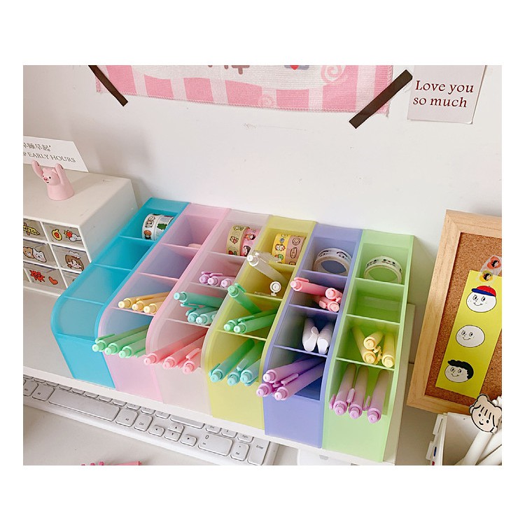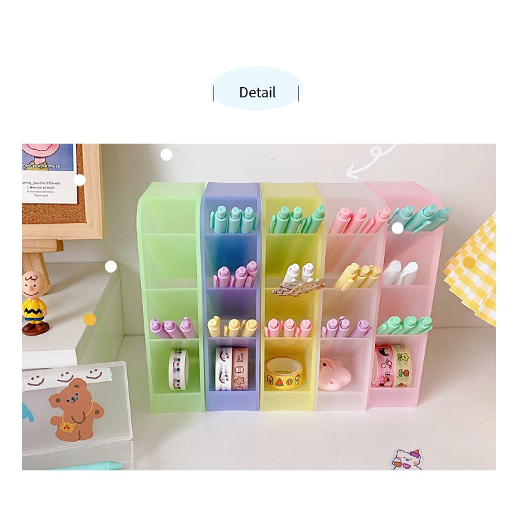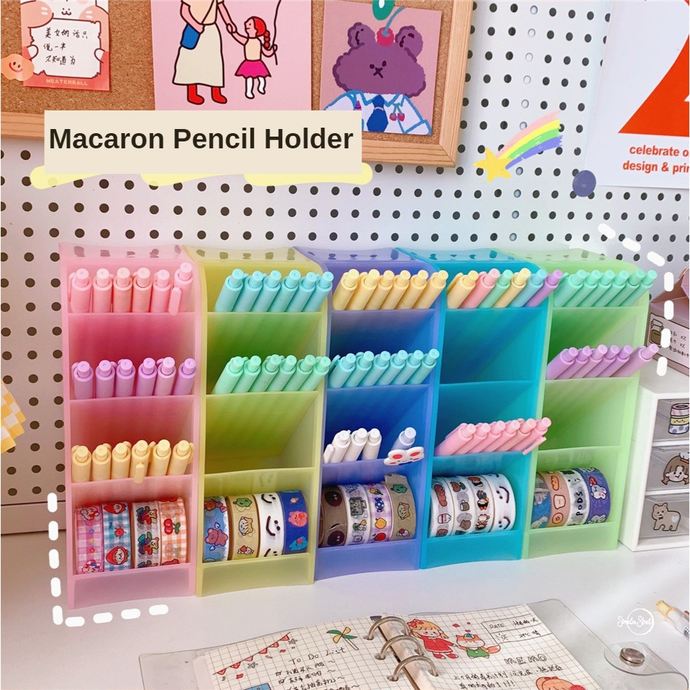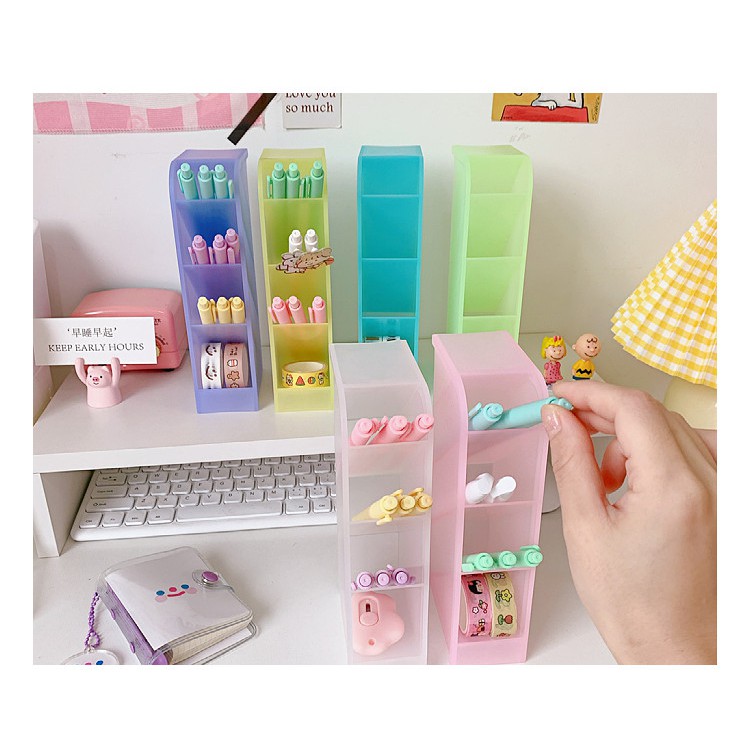 【SG Local Stock】Transparent Stationery Pencil Holder Macaron Color Slanting Desktop Organizer