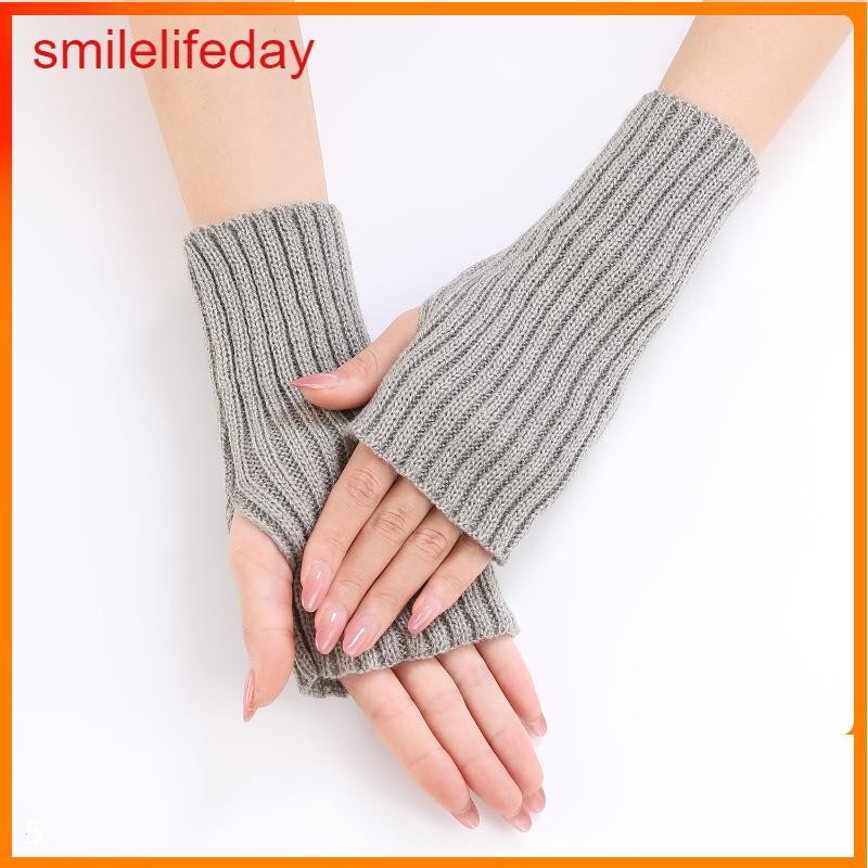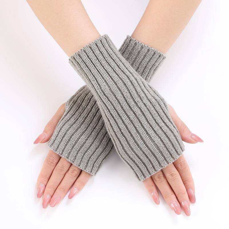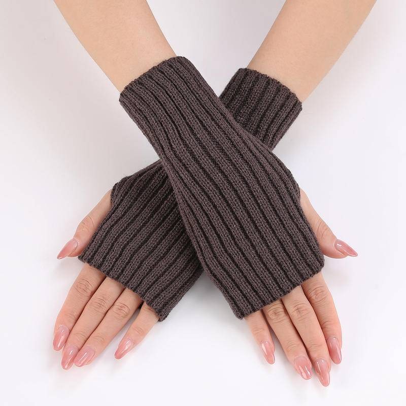 Long and Thick Striped Short Fashion Gloves for Autumn and Winter, New Women's Knitted Woolen Exposed Finger Arm Sleeves and Wrist Guards