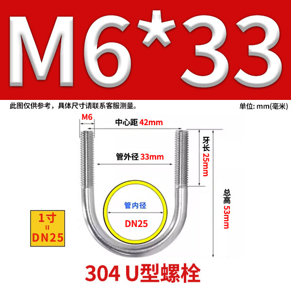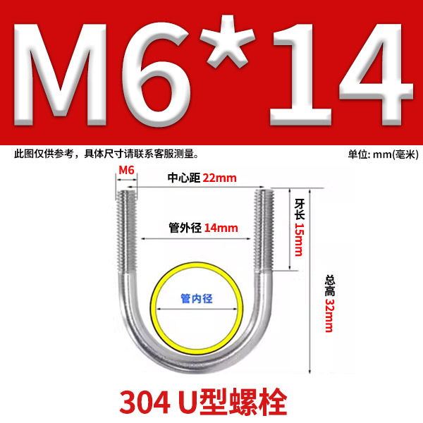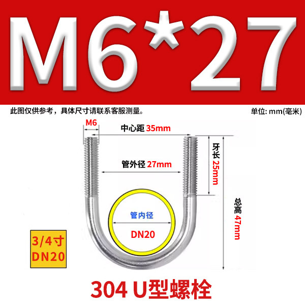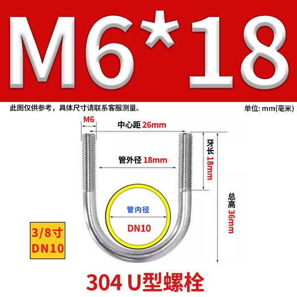 M6 U-Bolts Round Pipe U Bolt - A2 304 Stainless Steel U-Bolt Paip Bulat U Bolt - Keluli Tahan U型卡304不锈钢