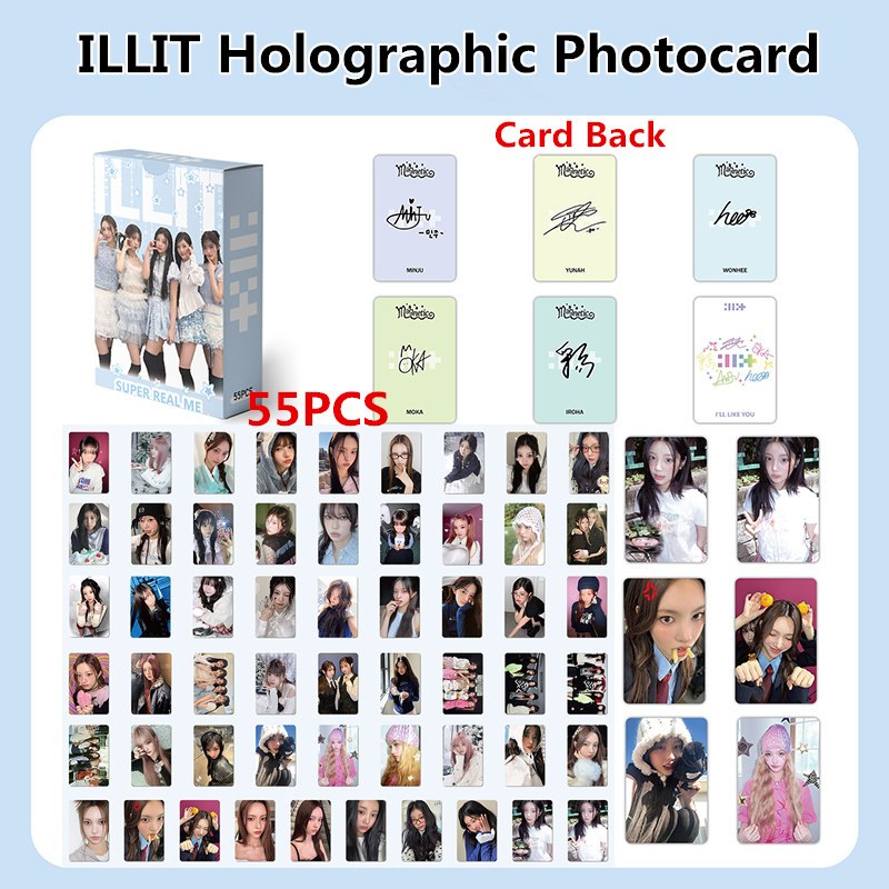 124pcs/box ILLIT Photocards Holographic LOMO Card Sticker KPOP WONHEE YUNAH MINJU MOKA IROHA Holographic card Stickers