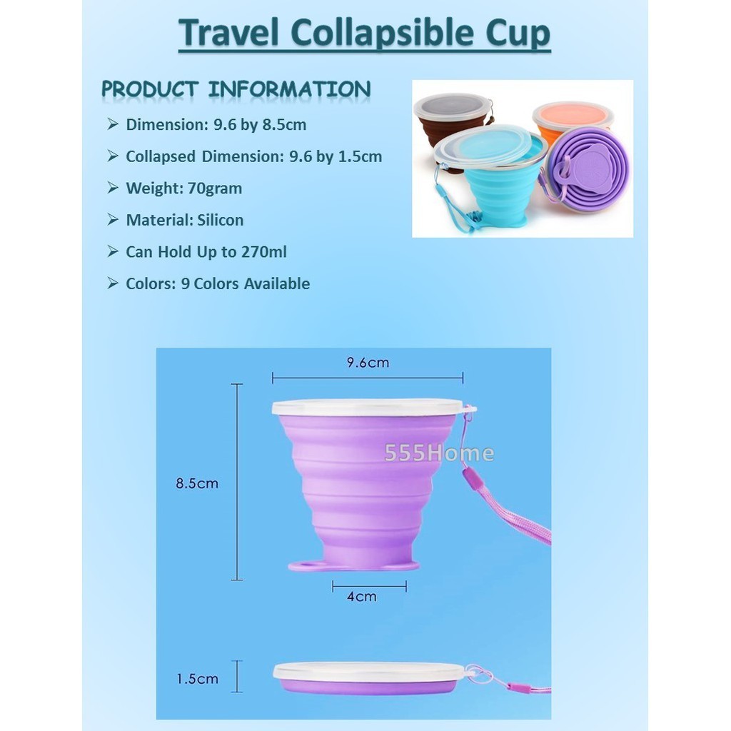 Travel Collapsible Cup / Foldable Drink Mug / Portable Fold Collapse / Food Grade/ 1.5cm Thickness