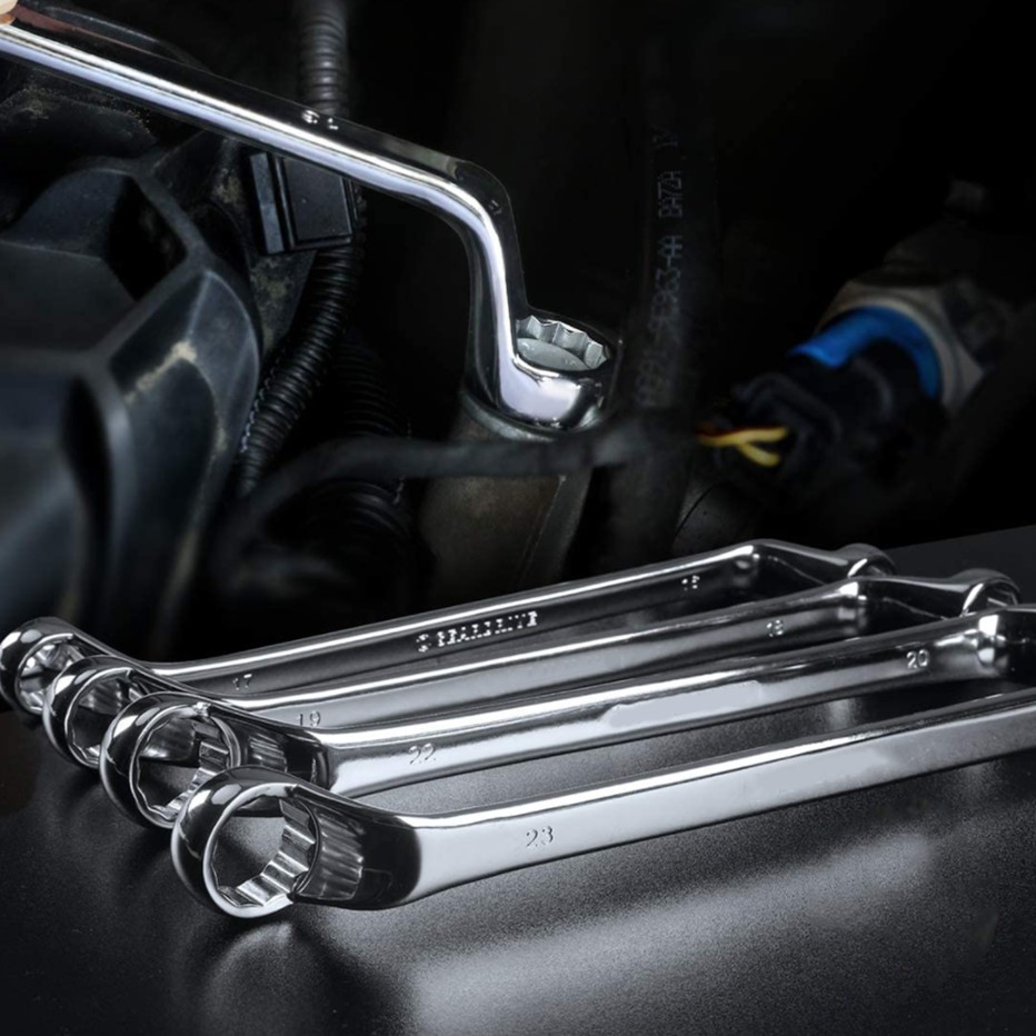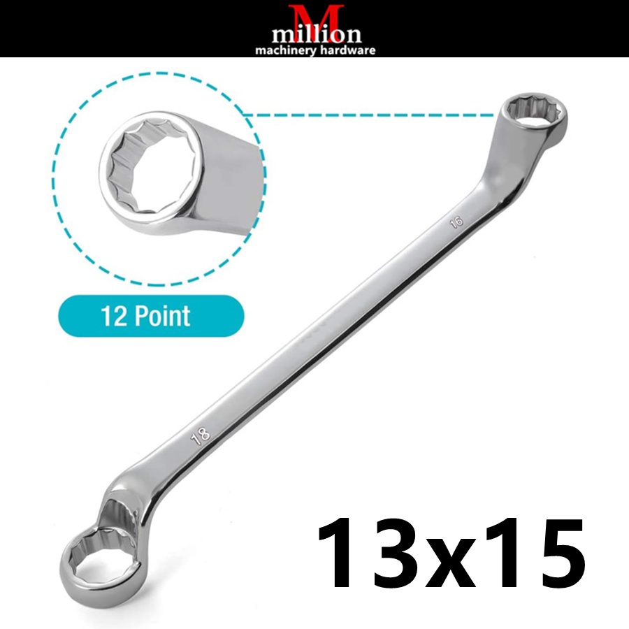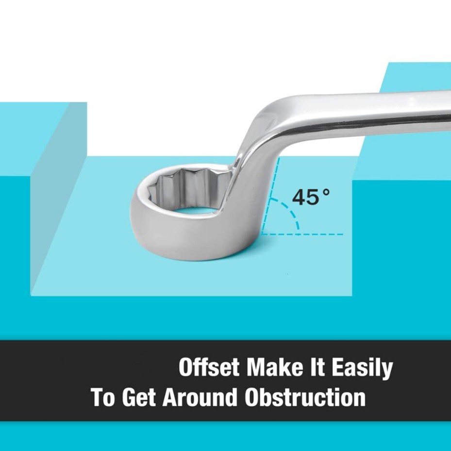 (12 Point) CRV Double Offset Ring Spanner Anti Corrosion 45 Degree Double Ended Dual Head Box End Wrench Garage Workshop Spanner Set