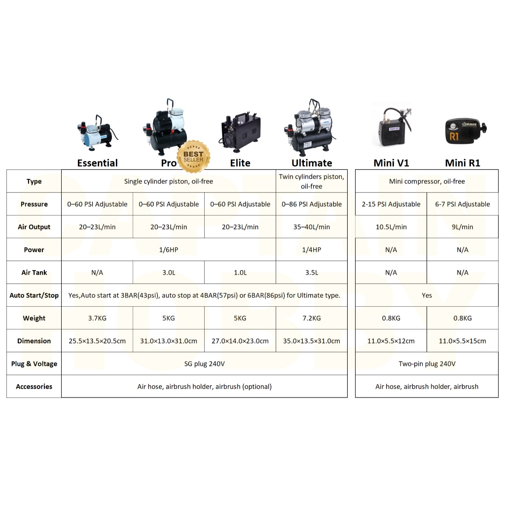 🇸🇬 Pro Airbrushing Compressor Kits Multiple Options with Air Tank & Mini for Gundam Gunpla Tamiya
