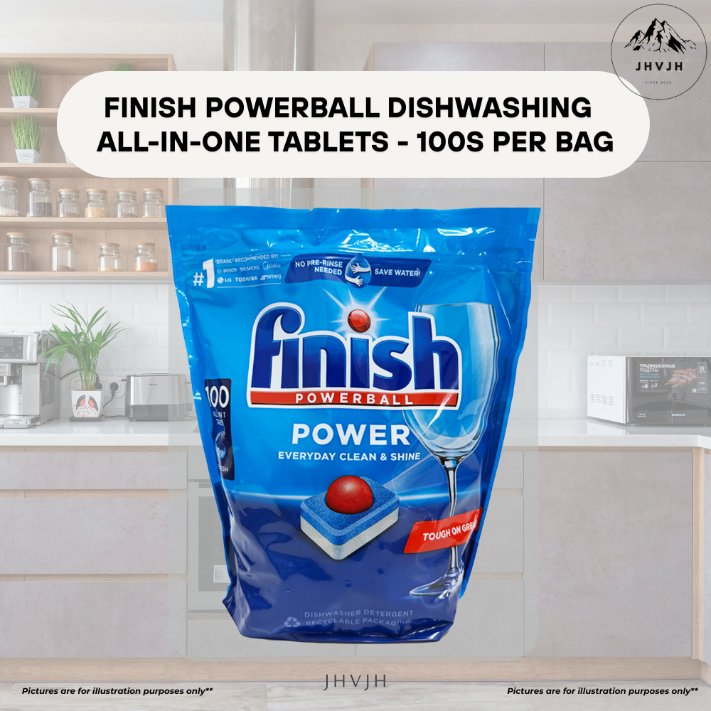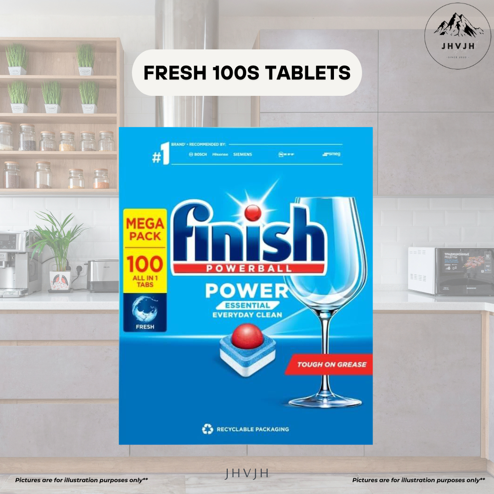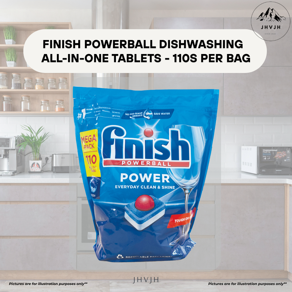 FINISH DISHWASHER TABLETS 100s / 110s -- POWERBALL ESSENTIAL 100 TABS // POWERBALL POWERR ALL-IN-ONE 110 TABS