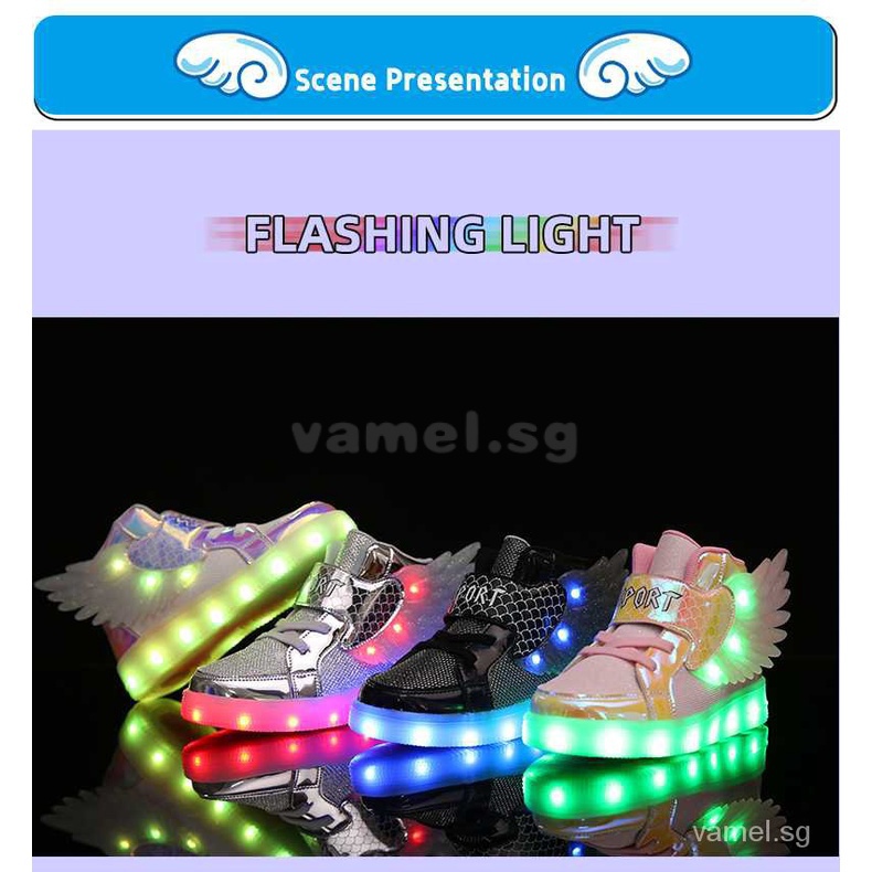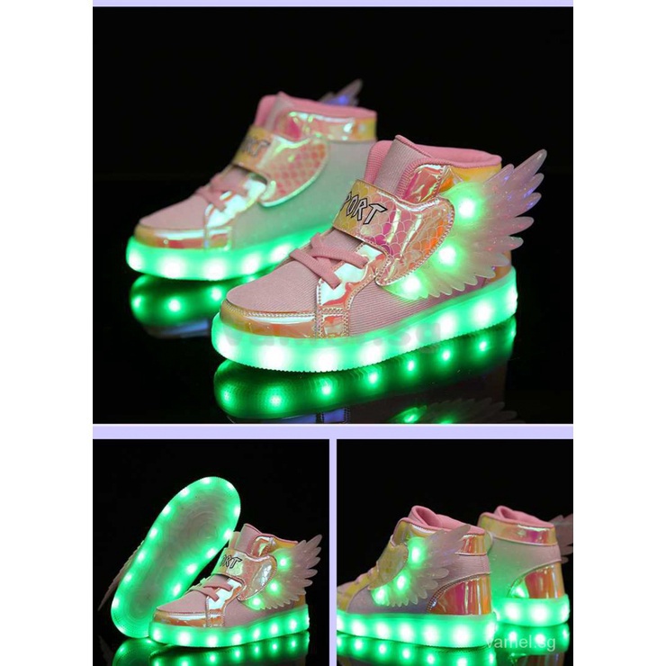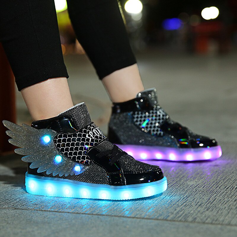Wing Shoes Light Flashing Children Little Boys Girls Kids 2021 Sports Casual Fashion Child Sneakers Silver Footware Led Boots dosM