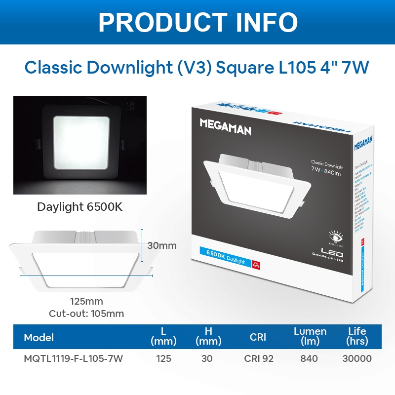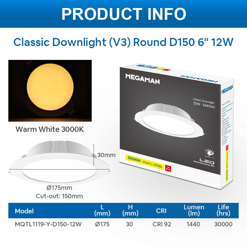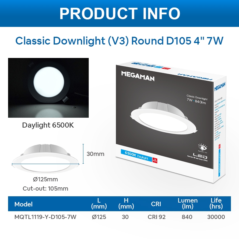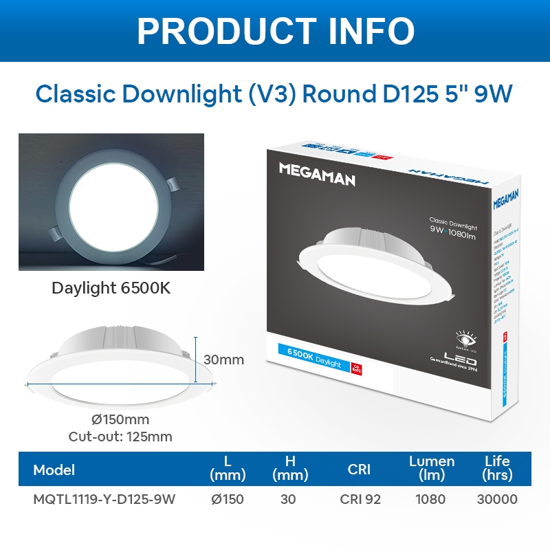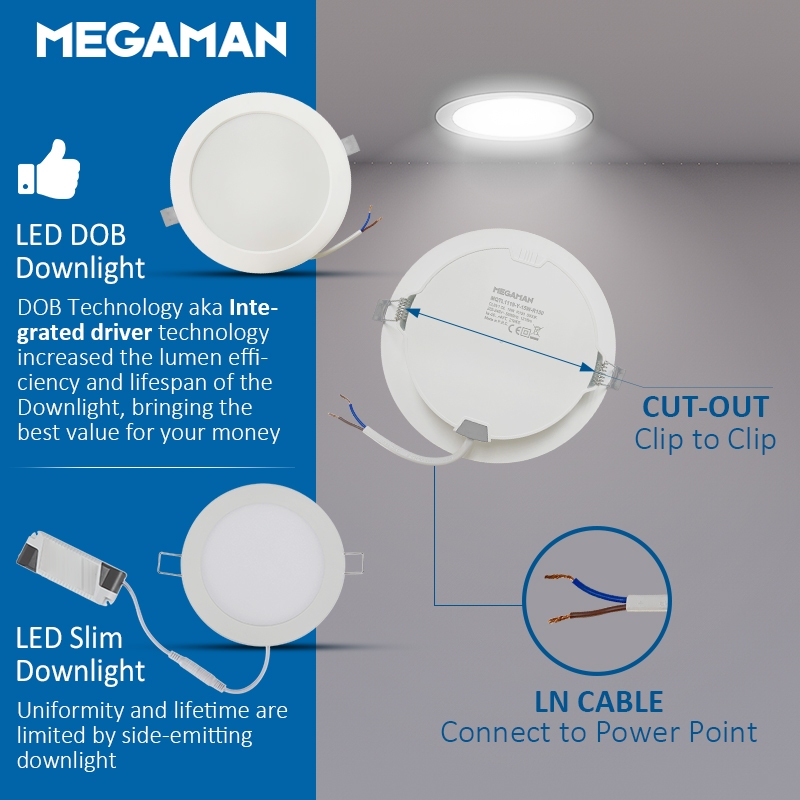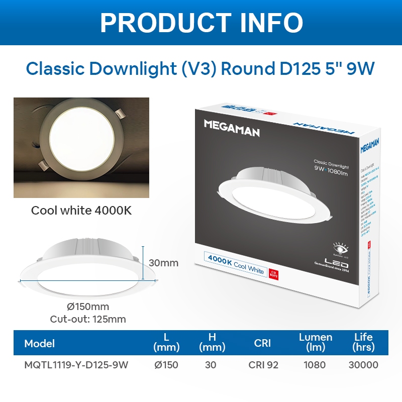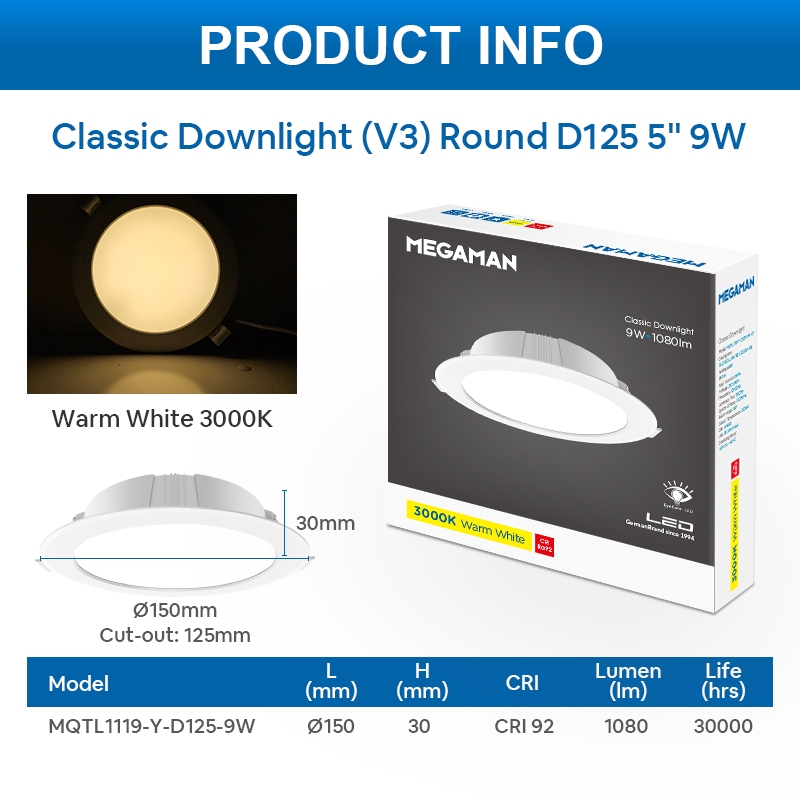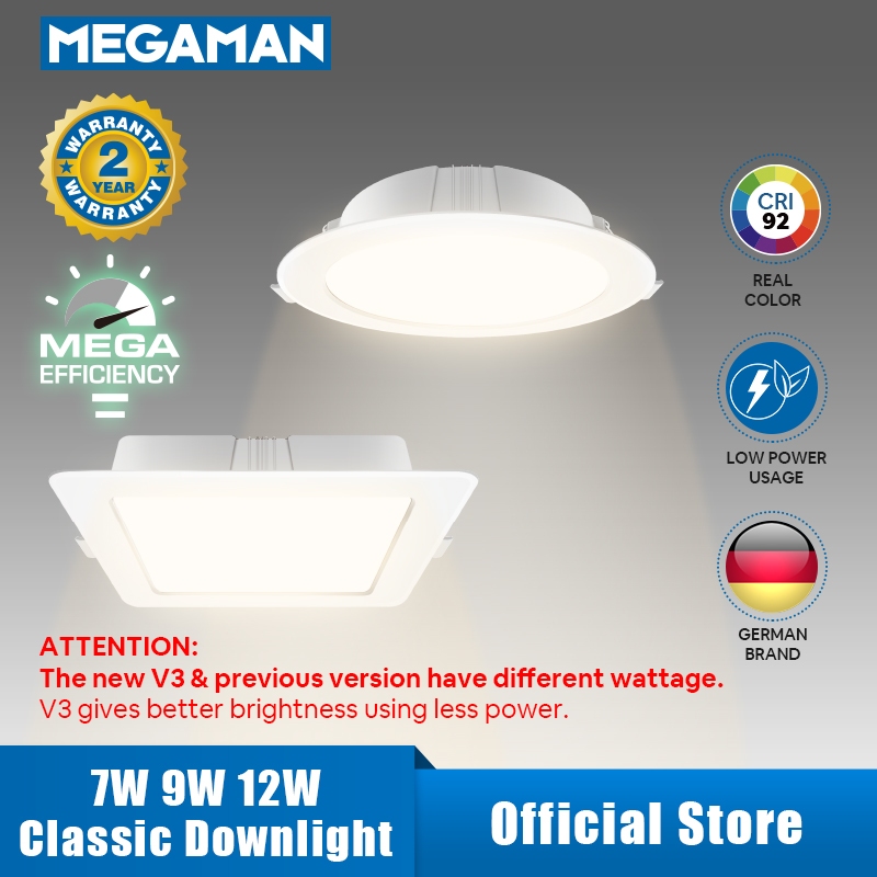 [2x Efficient] Megaman Classic Downlight (V3) 7/9/12W Mega Efficiency · Ultra Bright · Visual Comfort CRI92