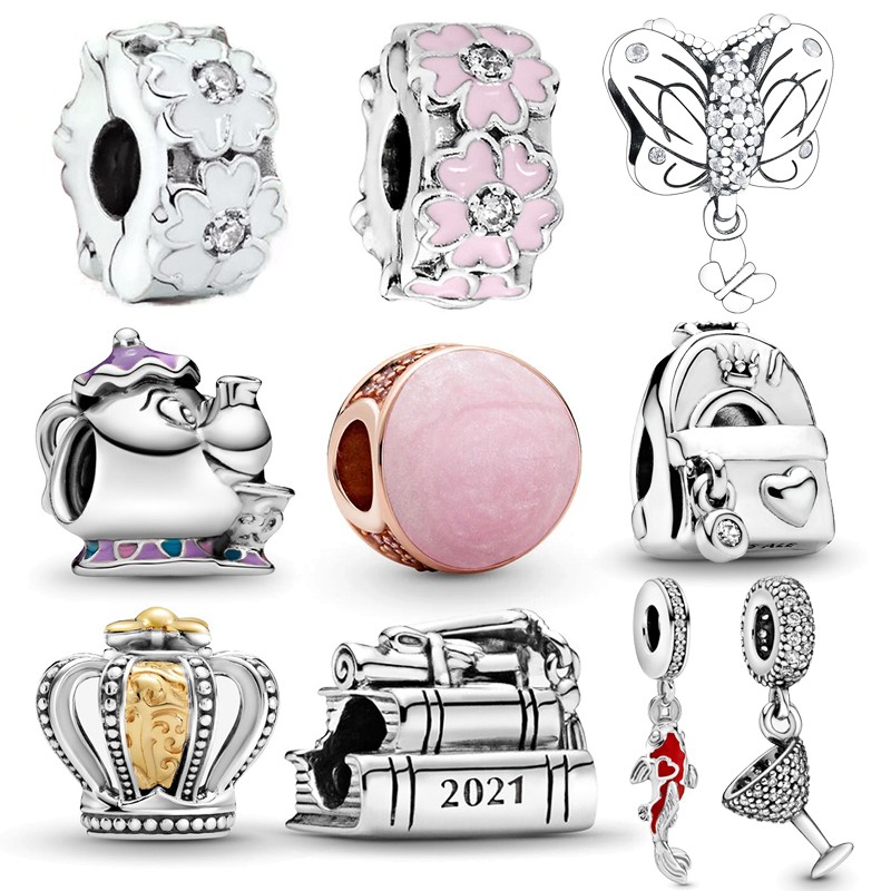 Silver color Rose Gold Pink Swirl Charm Beads Bracelet Charms Jewellery