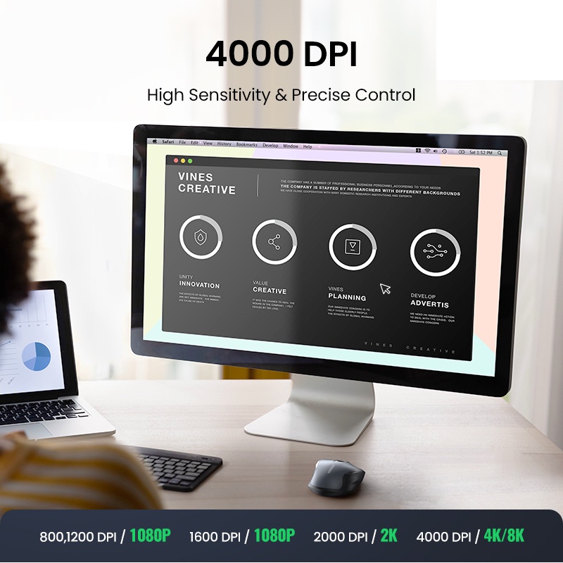 UGREEN Wireless Bluetooth Ergonomic Mouse | Silent Click Bluetooth Mouse | 4000 DPI