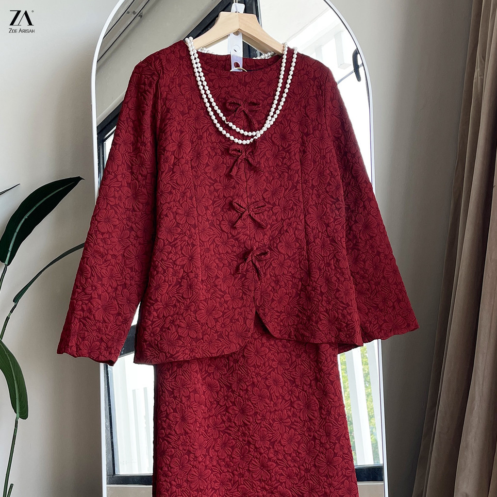 ZOE ARISAH Carmen Kurung Kedah Moden Baju Raya 2026 Coquette Velvet Silk Embroidery Brocade Textured Modern ZOE ARISSA