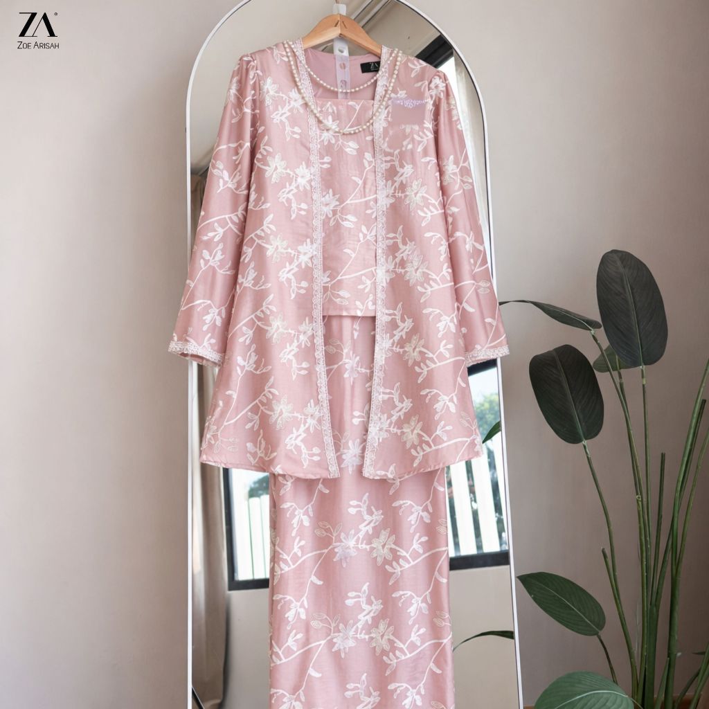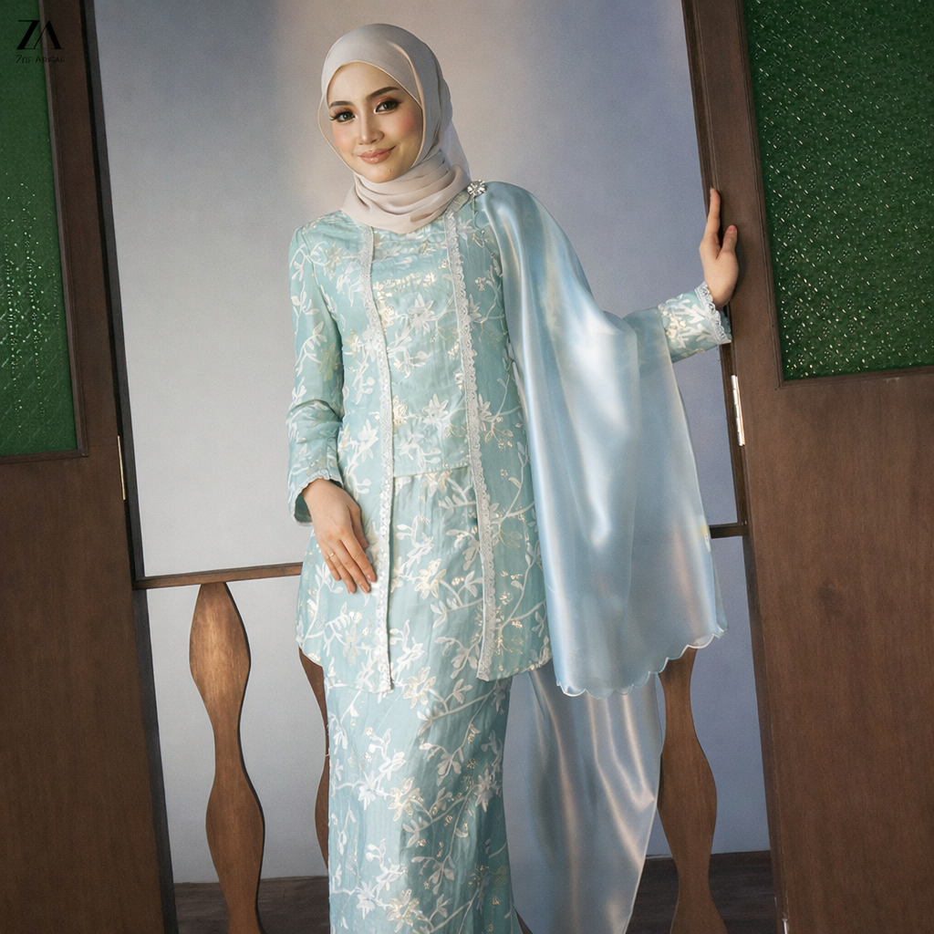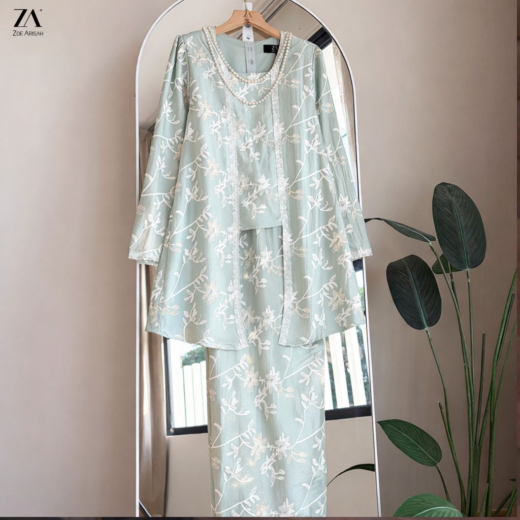 ZOE ARISAH Fiora Kurung Kebaya Sulam Lace Premium Chiffon Silk Baju Raya 2026 Scallop Mint Soft Yellow ZOE ARISSA