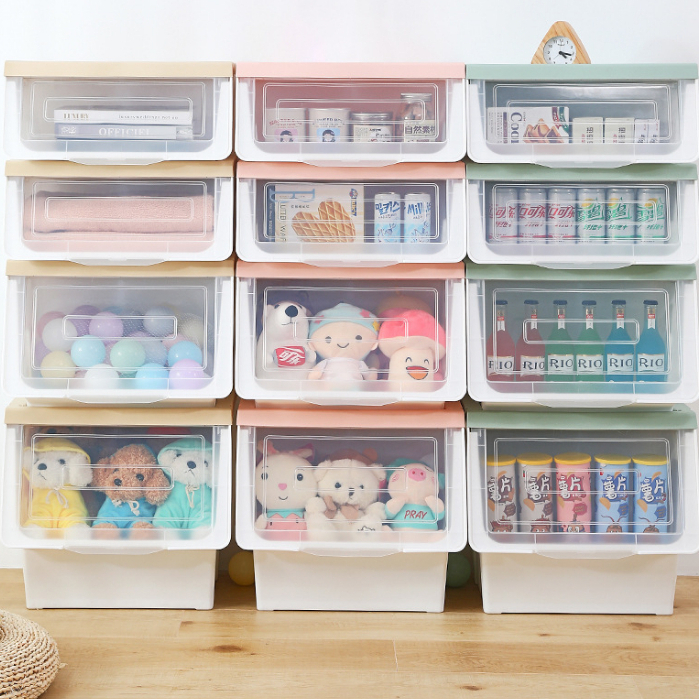 Multipurpose Stackable Storage Box Movable Container Storage Organizers With Transparent Lid Drawer / Cube Front Opening