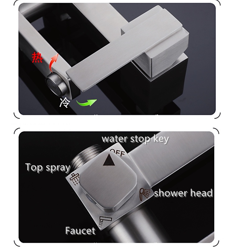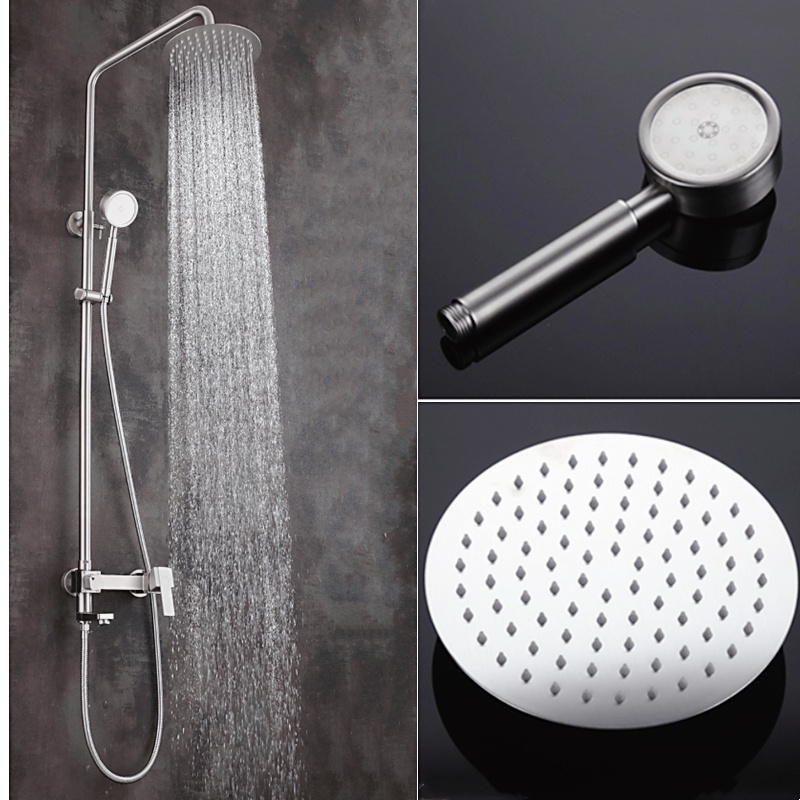 *Stainless steel shower set bathroom shower faucet pressurized top spray lift rod hot and cold water shower,Bathtub Mixing Faucet with Shower Head