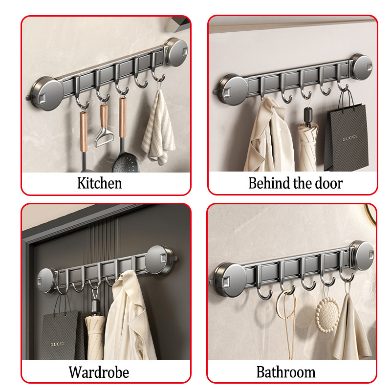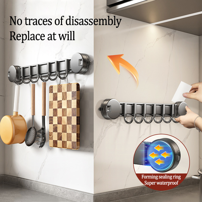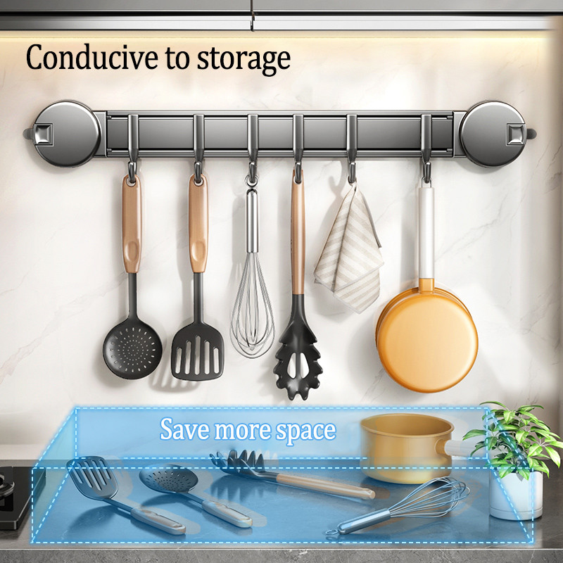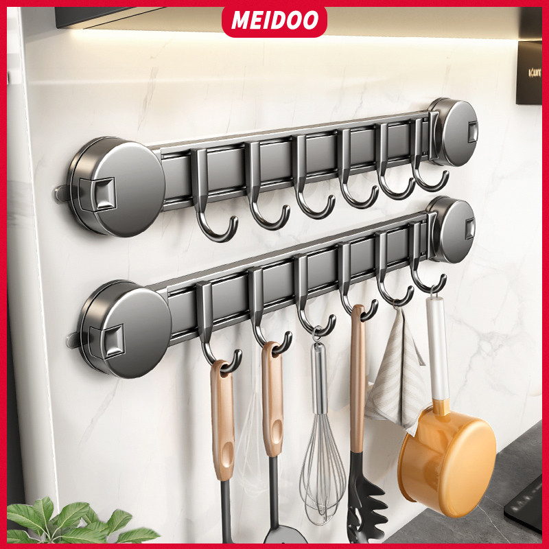 MEIDOO Suction Cup Kitchen Hook No Drilling Wall-Mounted Sliding Rail Integrated Storage Rack