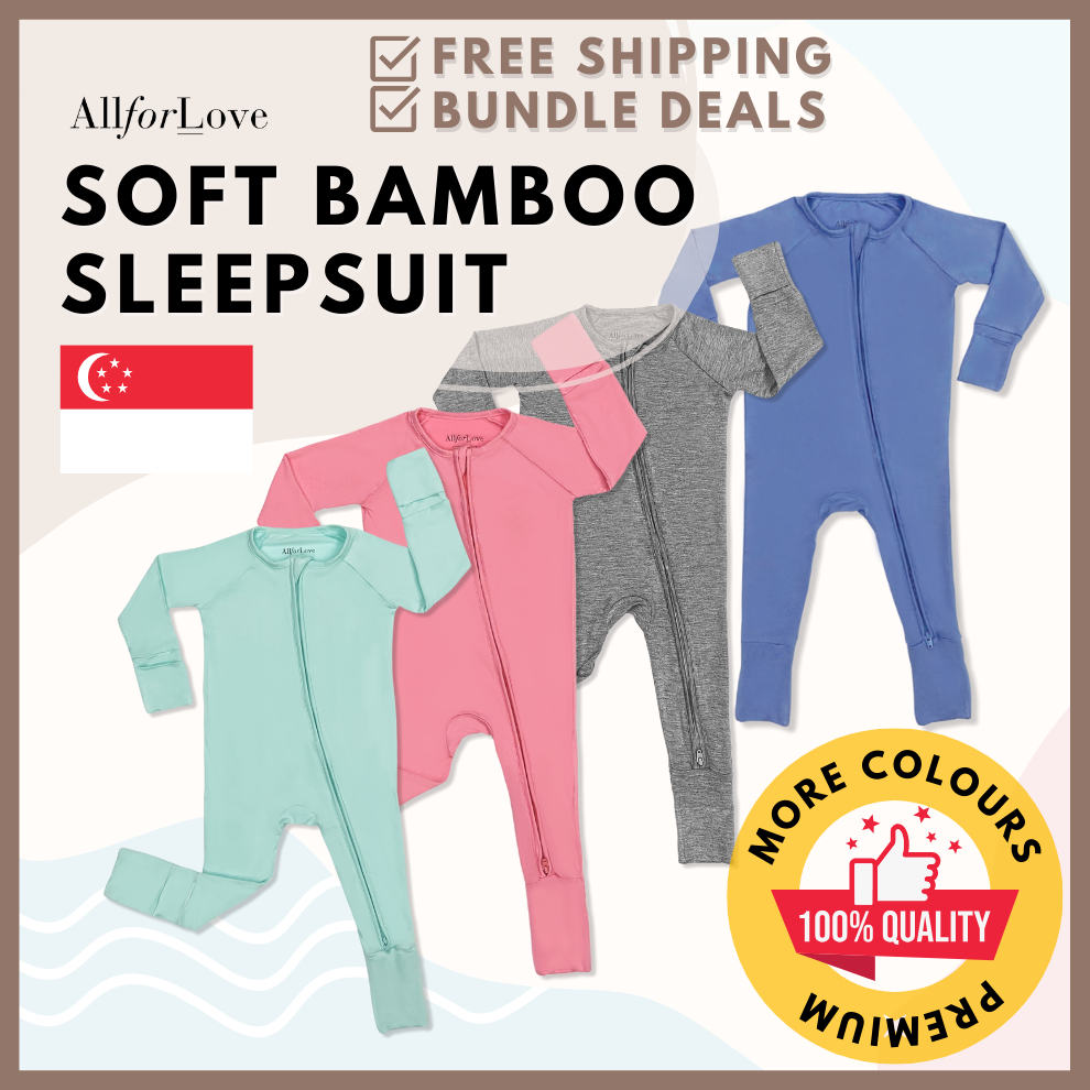 🇸🇬🔥 Baby Bamboo Soft Long Sleeve Zip Sleepsuit Pajamas Infant Baby Newborn Overall Romper Jumpsuit Sleepwear
