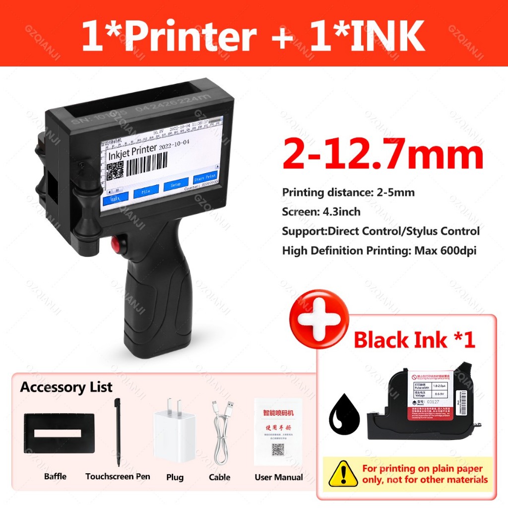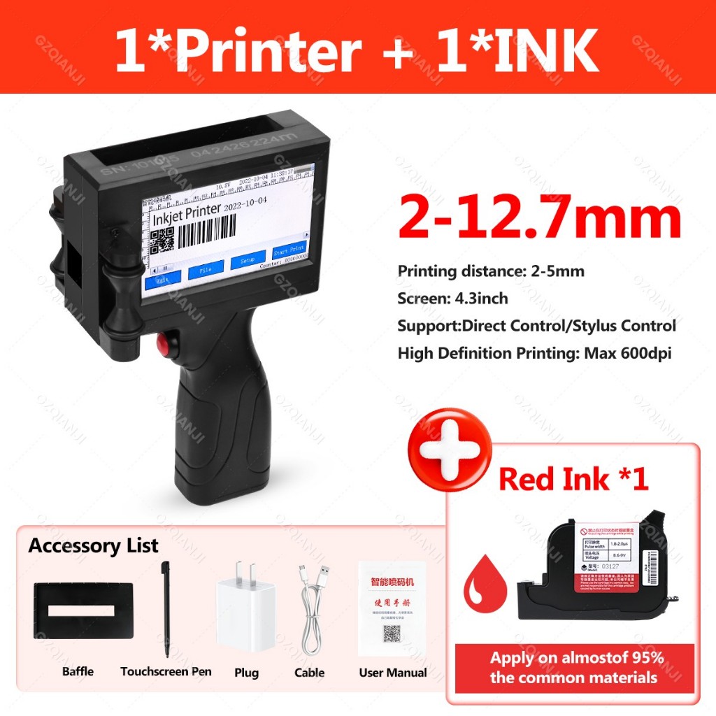 INKP03 Handheld inkjet printers 12.7mm Date Time Coder Handheld Code Logo Label Maker on Glass Metal Plastic printer for printing production