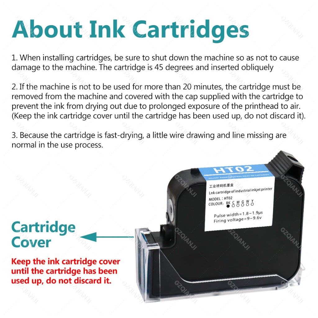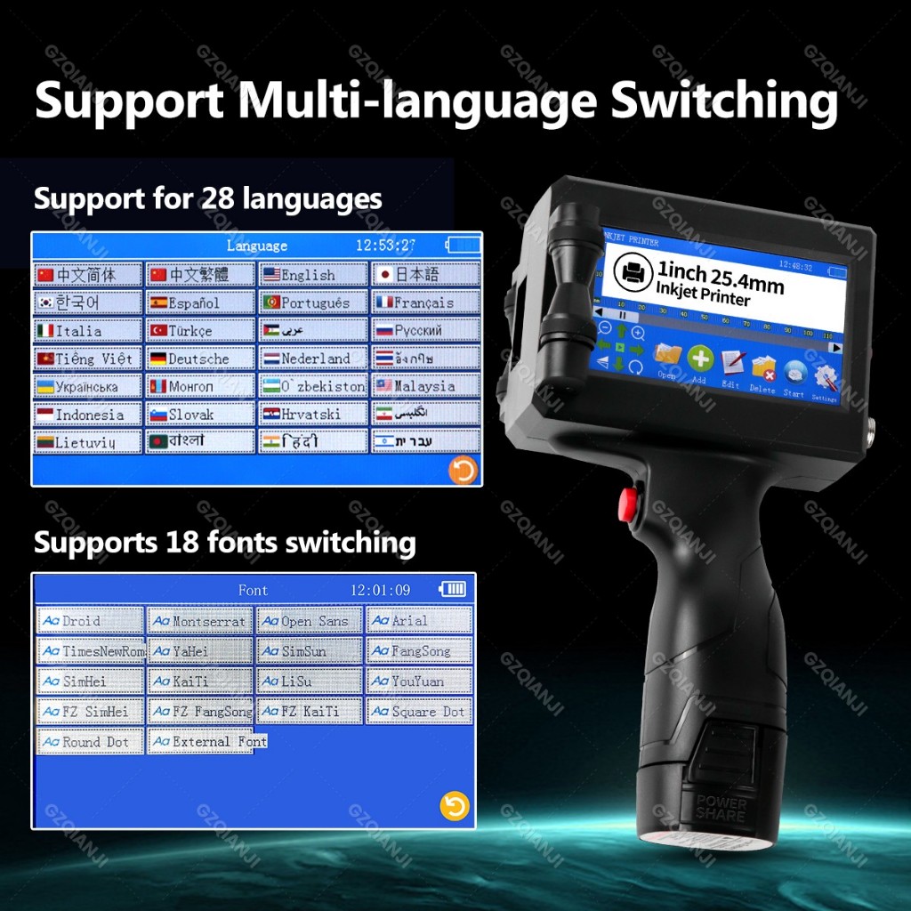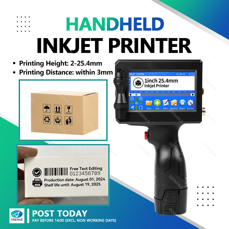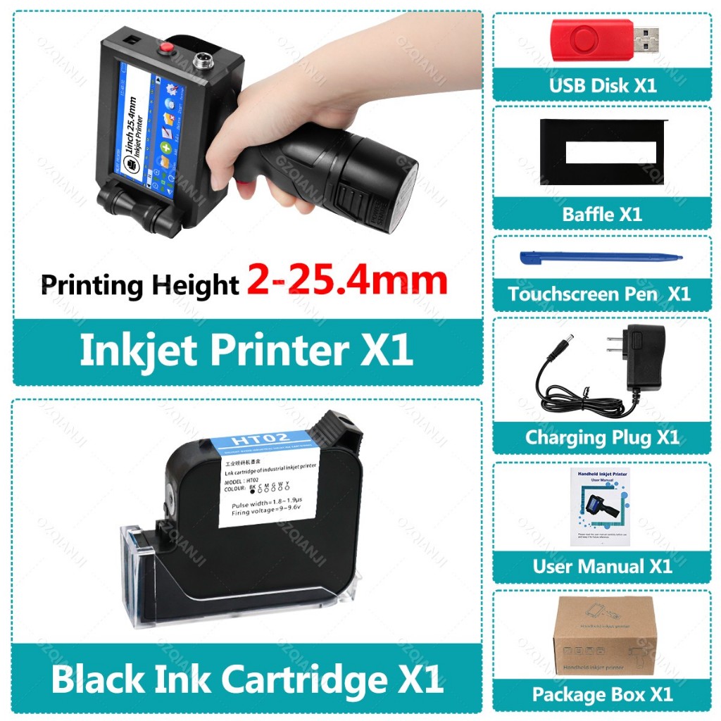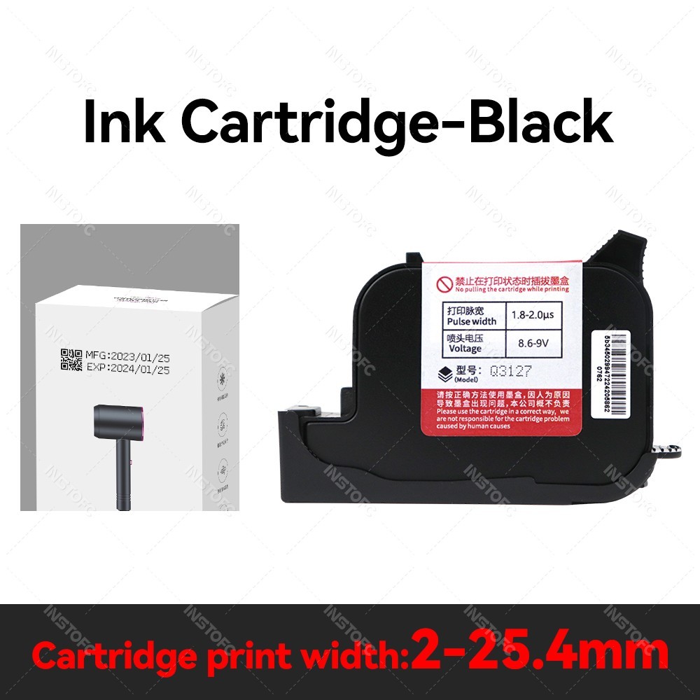 Handheld Inkjet Printer 25.4mm Black Quick Dry Cartridge Batch Date Number Logo Time Date Coding