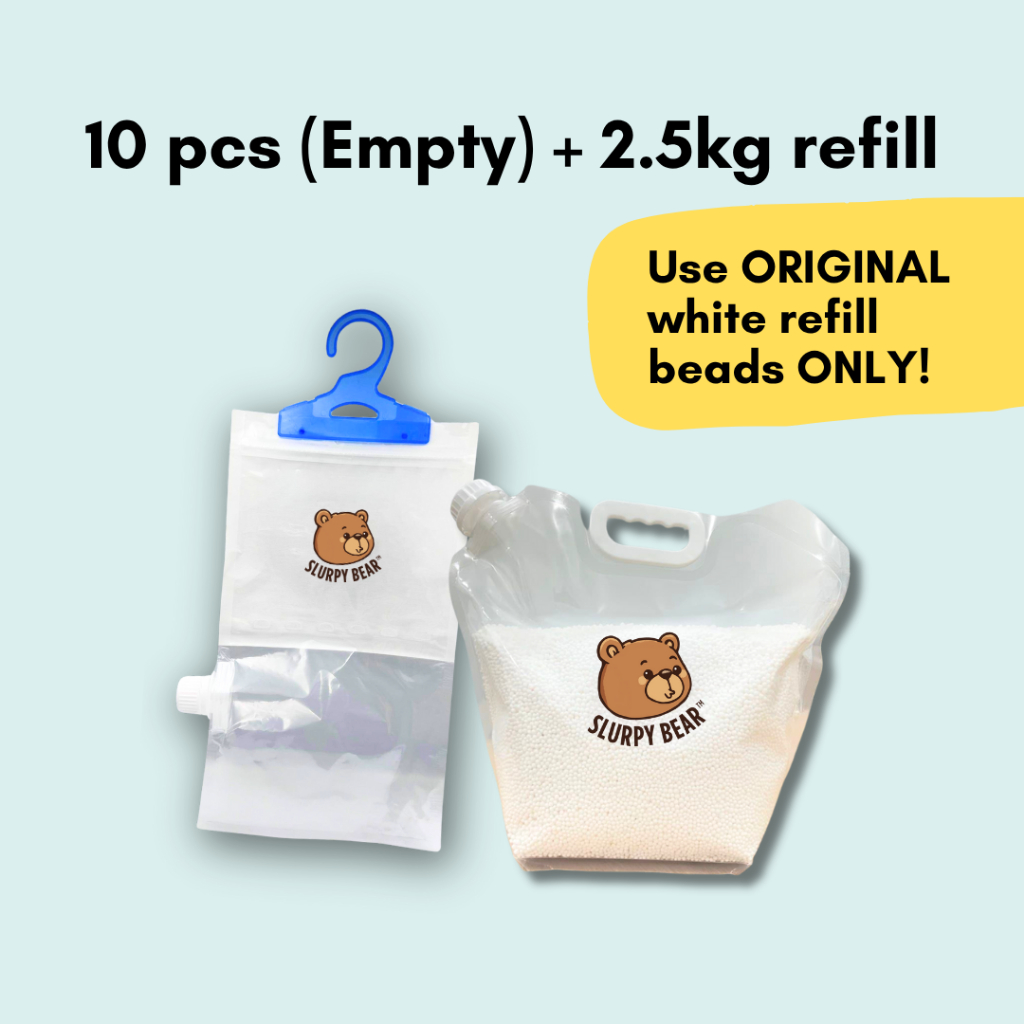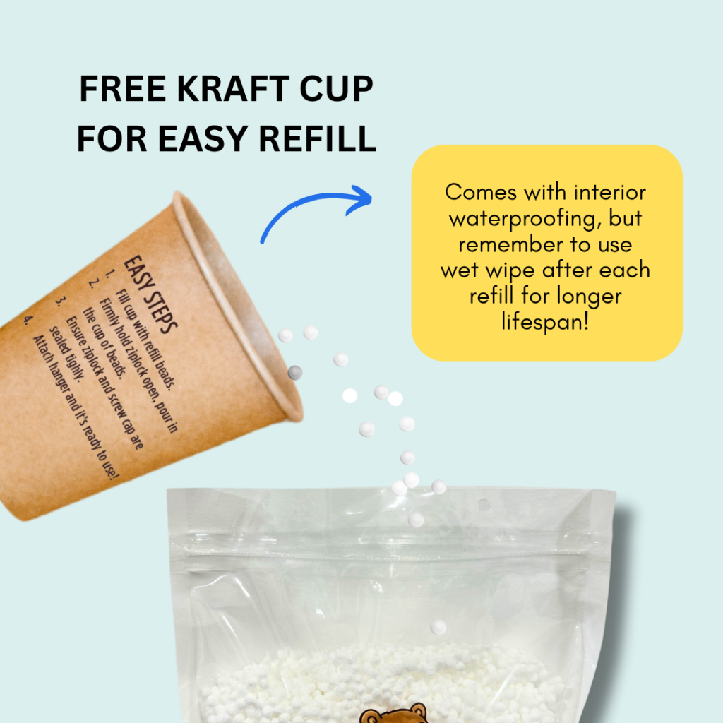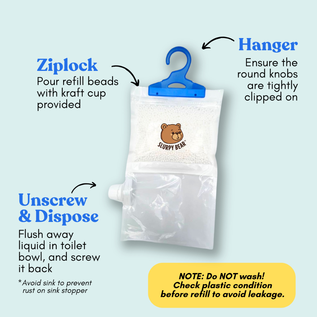 SLURPY BEAR *REFILLABLE* Hanging Wardrobe Dehumidifier Moisture Absorber | Cabinets | Thirsty Hippo | Eco-friendly
