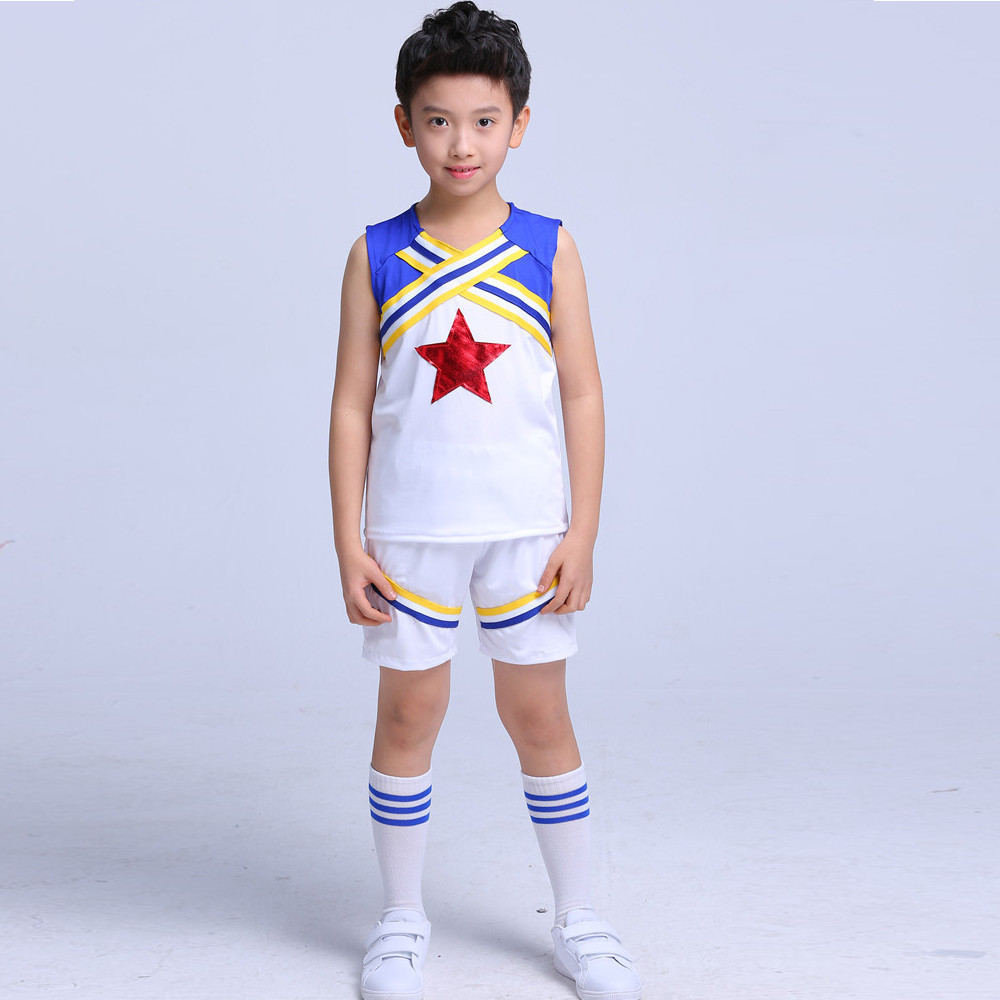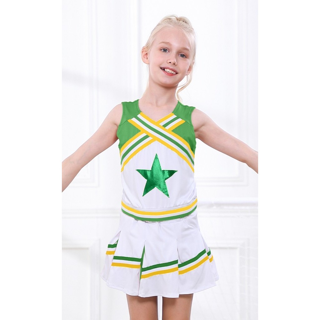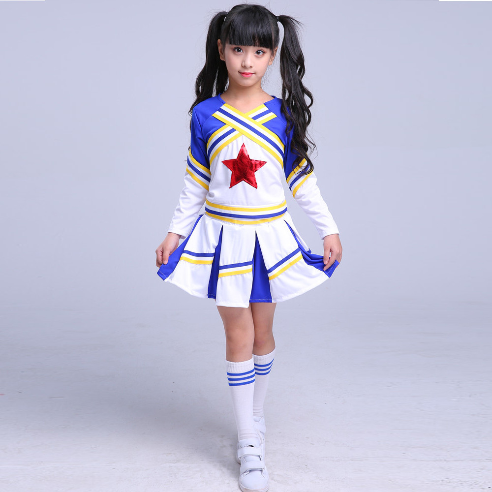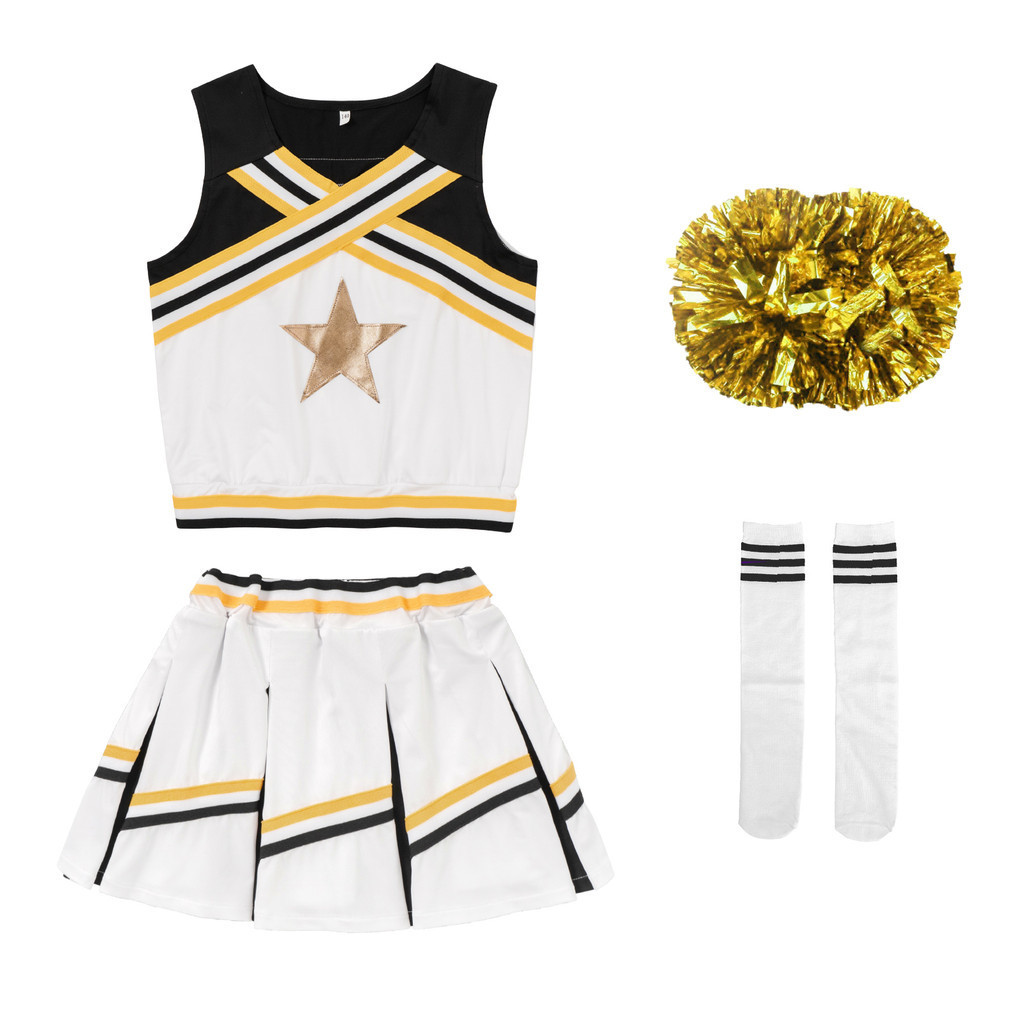 4Pcs Girls Cheerleader Uniform Outfit with Pom Poms&Socks Costume School Activities Performance Outfits 4-16 Years Blue Red Purple Pink