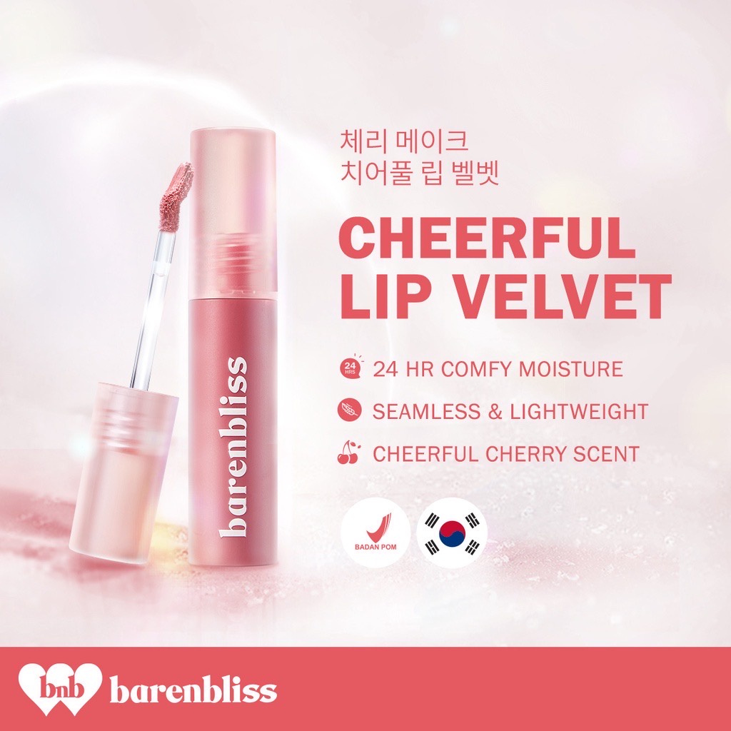 BNB Barenbliss Cherry Makes Cheerful Lip Velvet Korea Lip Cream Tint - Blushed Rosewood Wine - EXP 06/25