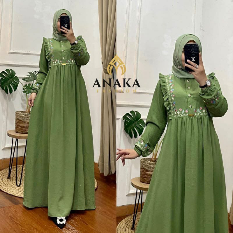 Zalfiya Renata Dress Maxy Crinkle Airflow Premium Embroidered Original