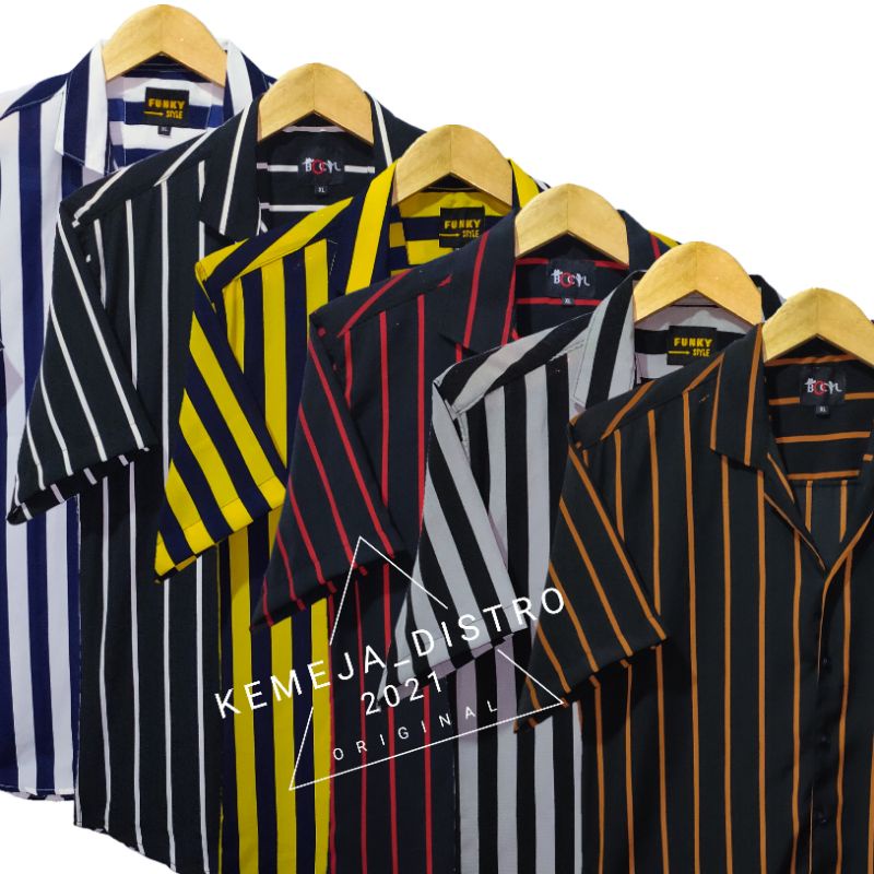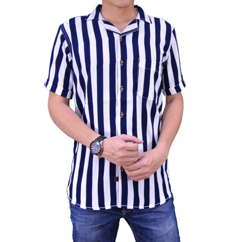 KEMEJA Premium Quality Men's Short Sleeve Striped Shirt Striped Shirt Men Shirt