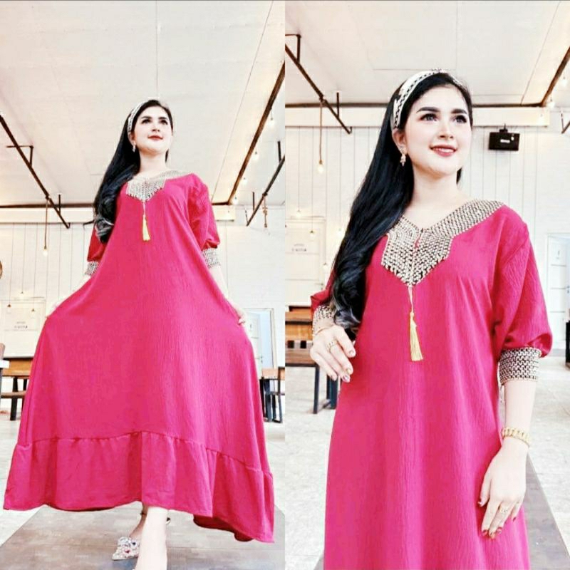 Luxurious Sultan Lace Dress with Crinkle Airflow Sultan Crinkle Airflow Jumbo Kaftan Abaya Dress for Nursing