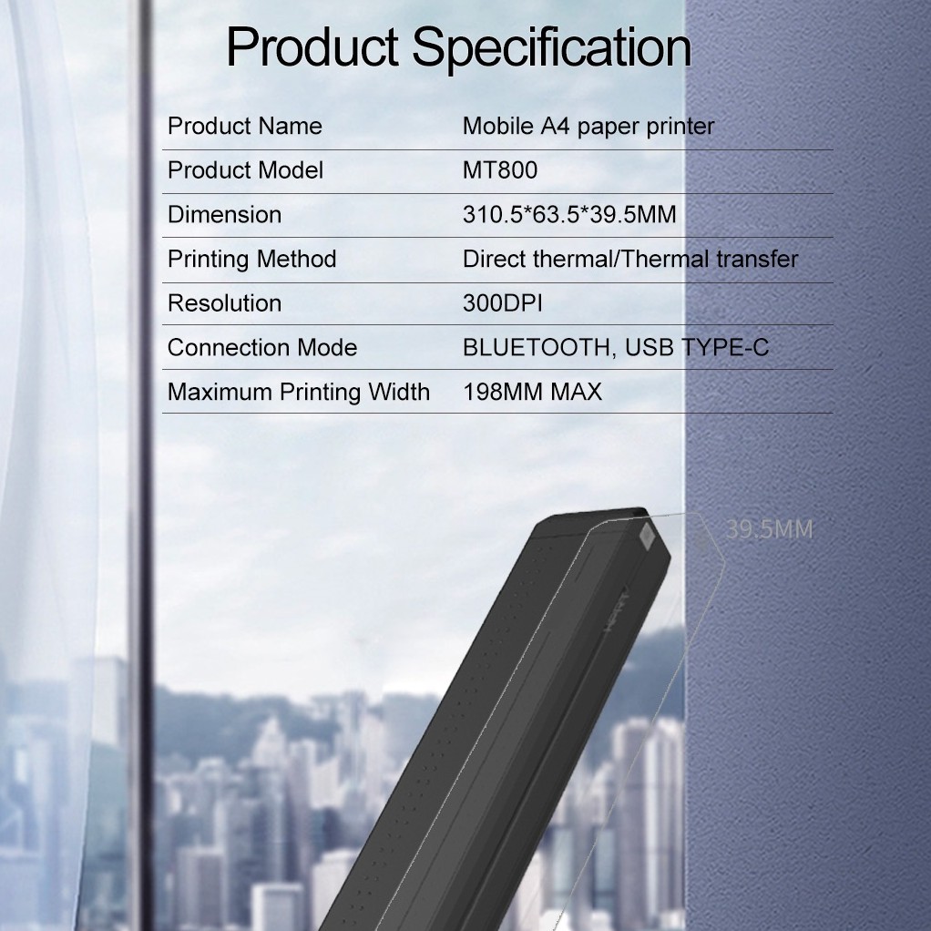 【Genuine 🔥5-star SALE】SG NEW Best selling🌟Portable A4 Paper Printer HPRT🌟MT800🌟printer wireless 🌟 printer 🌟MT800 printer🌟A4 black and white Mobile phone connected with wireless WiFi mini portable🌟A4 Pencetak mudah alih🌟MINI PORTABLE/MOBILE RECIEPT