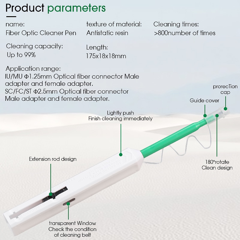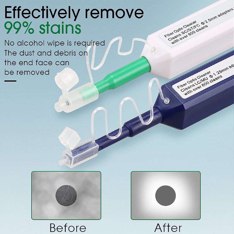 SC/FC/ST/LC One-Click Cleaner Tool 1.25mm and 2.5mm Fiber Optic Cleaner Fiber Optic Cleaning Pen 800 Time Cleans