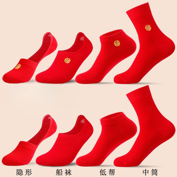Classical Unisex Red Socks Comfortable Cotton Lovers Socks Festive Red Socks Ankle Socks Red
