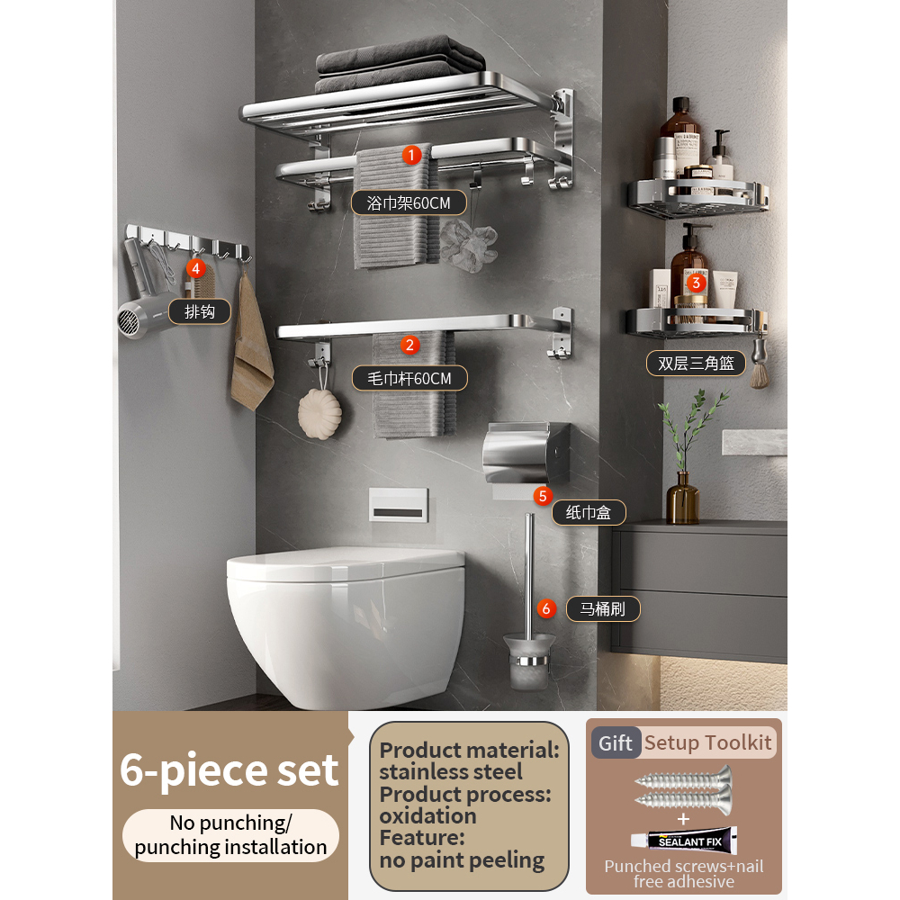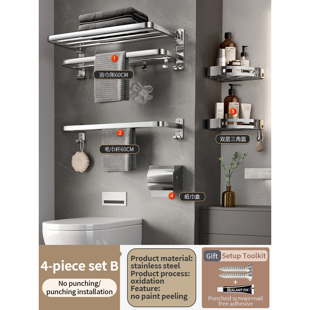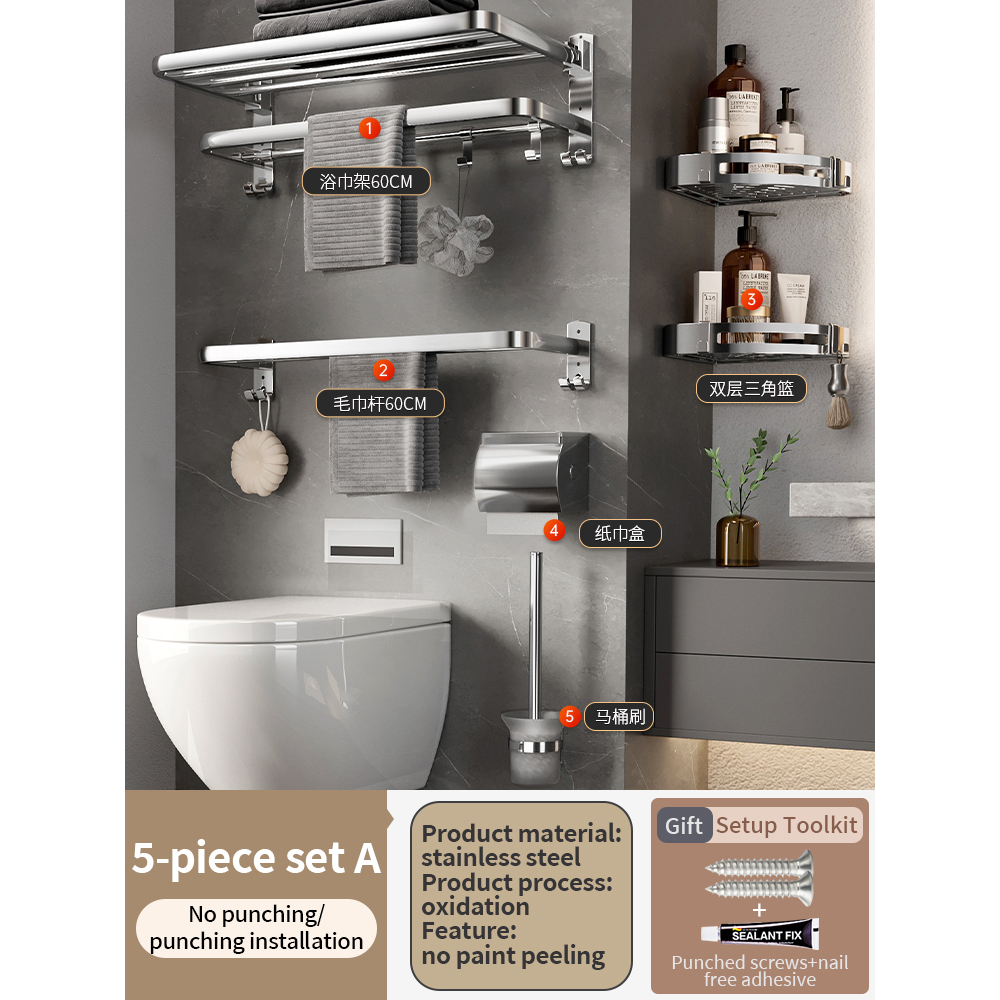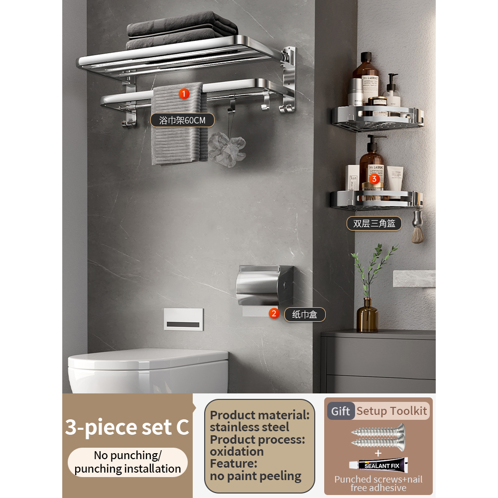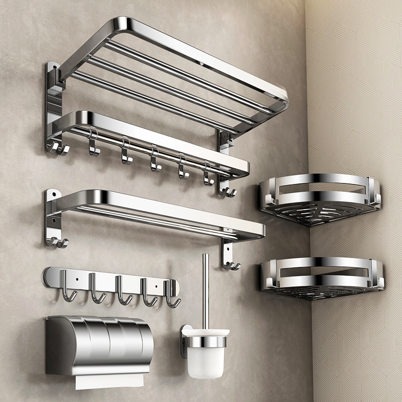 [SG Seller]YUN JIE YA Stainless Steel Bathroom Towel Rack Hardware Shelf Hanger Towel Bar Hook Towel Ring Toilet Paper Holder Bath Accessories