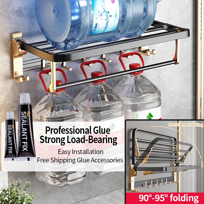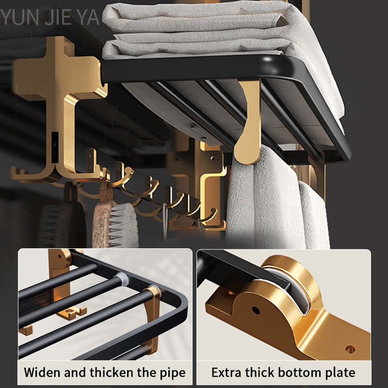 【SG Seller】YUN JIE YA Bathroom Storage Hardware Towel Rack Folding Towel Rack Toilet Brush Soap Rack Paper Bathroom Accessories