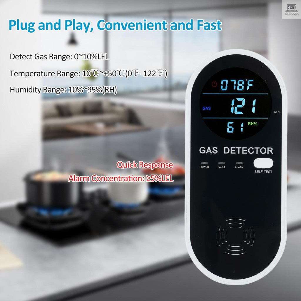 Natural Gas Detector 3 in 1 Plug-in Propane Gas Detector (Gas, Temperature and Humidity) Combustible Gas Detector for Home & RV Gas Leak Detector for LNG Tolokm