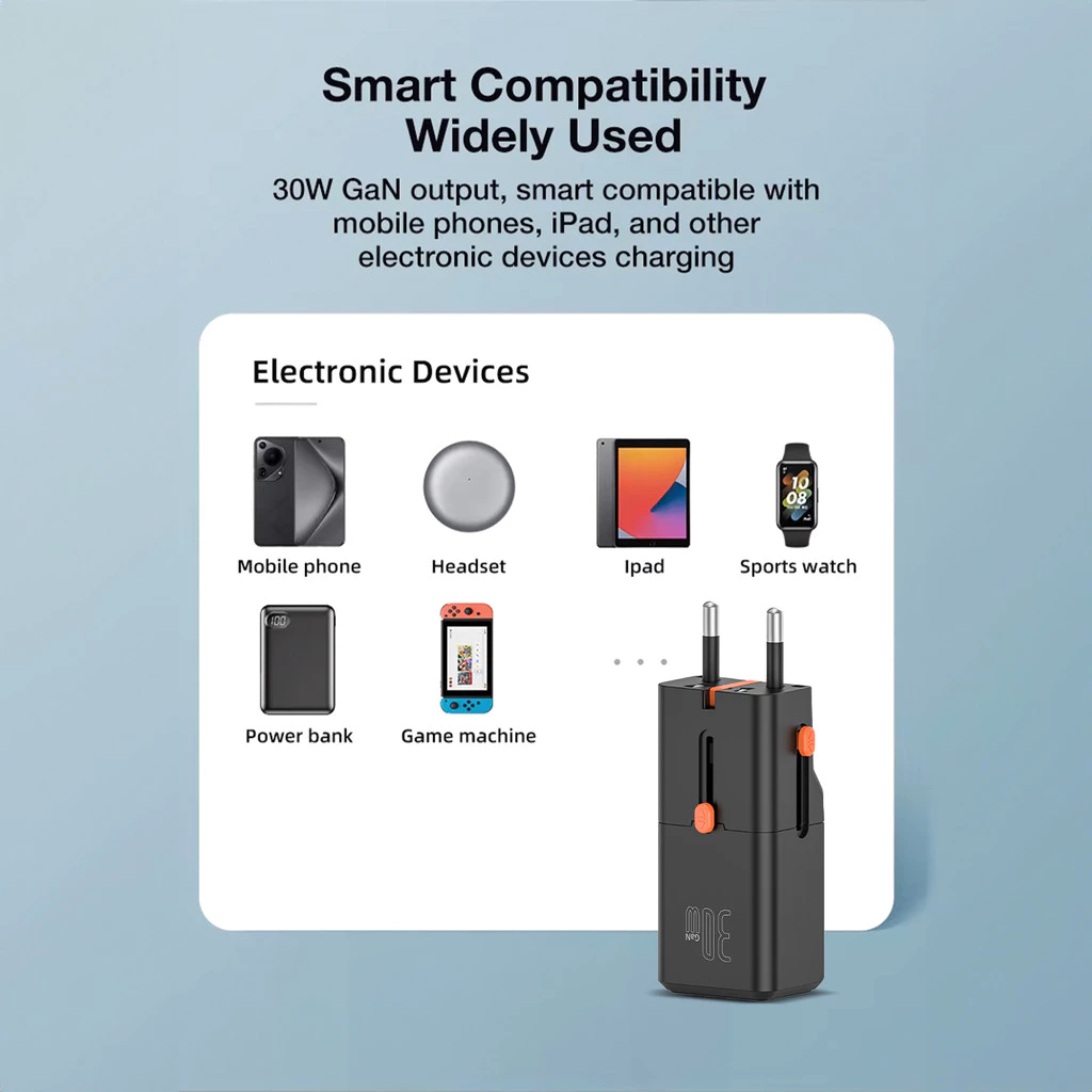 KiiP Wireless C23T Universal Travel Adapter Charger Mini Fast Charging 30W GaN Portable Travel
