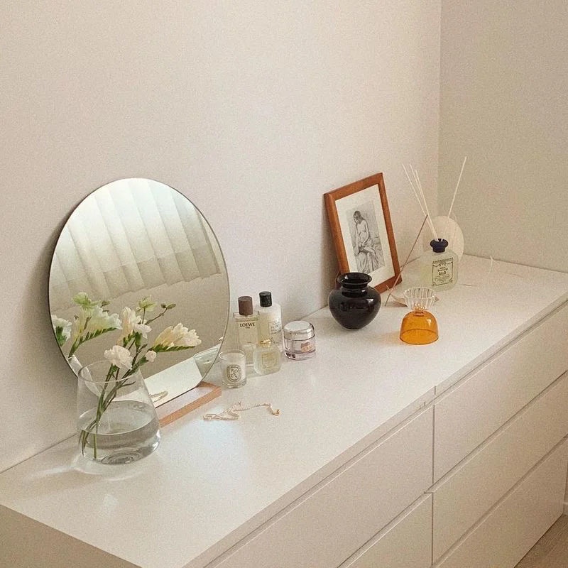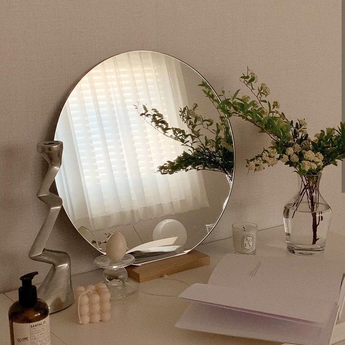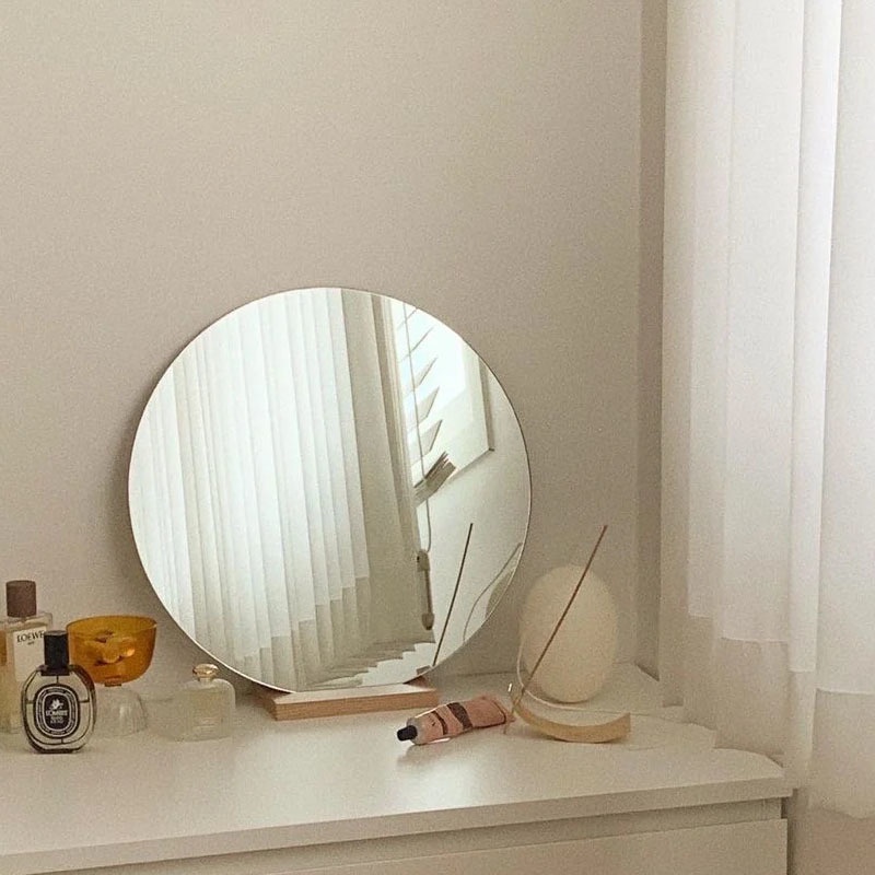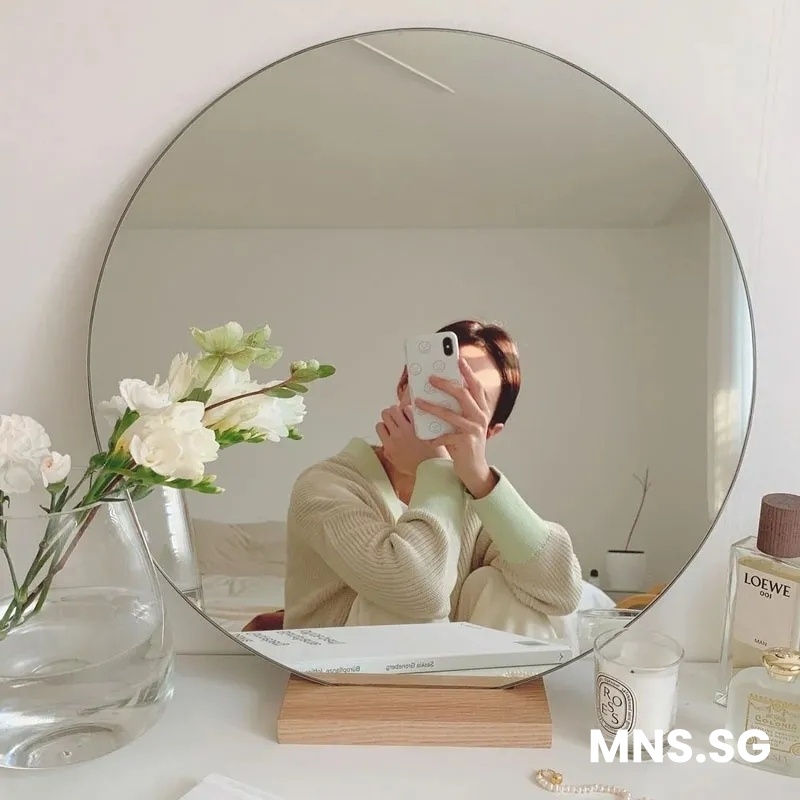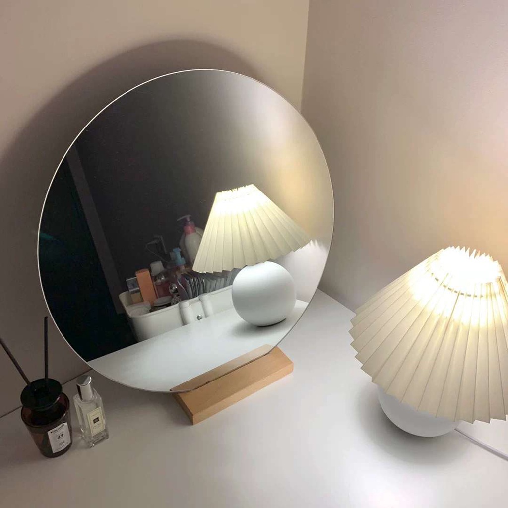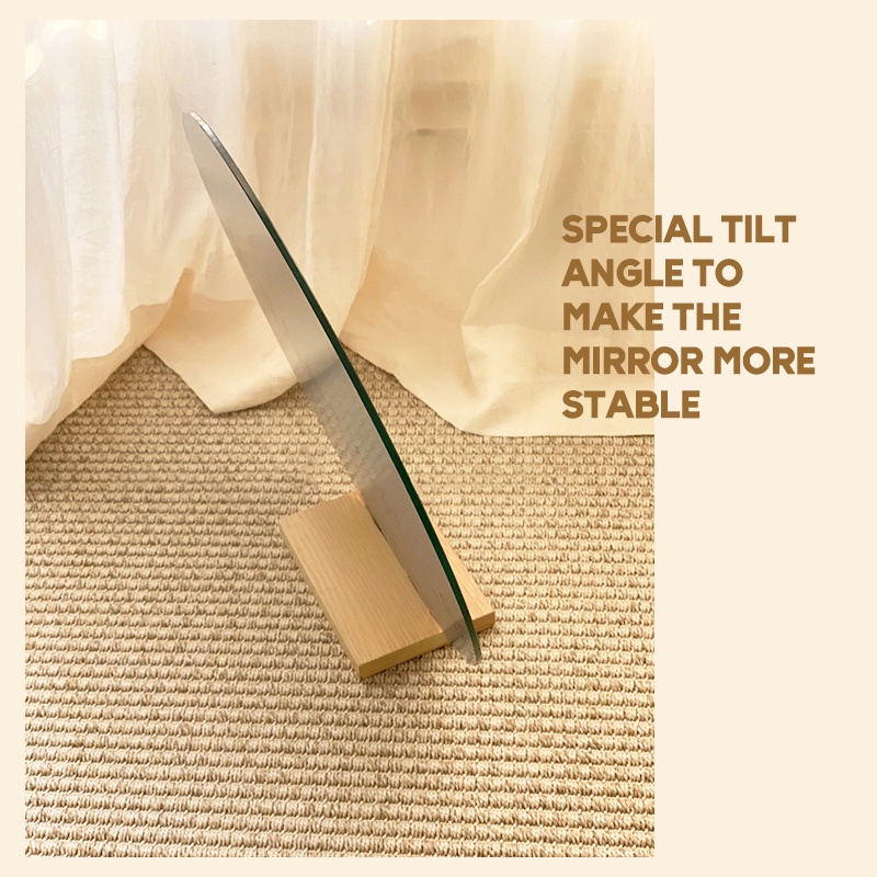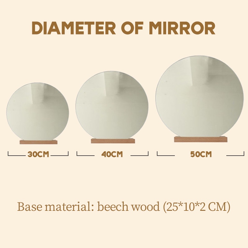 MNS Dressing Table With Mirror Desktop Makeup Mirror Solid Wood Base Round Mirror Standing Mirror Korean Handheld Mirror