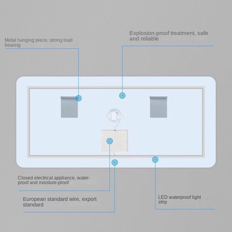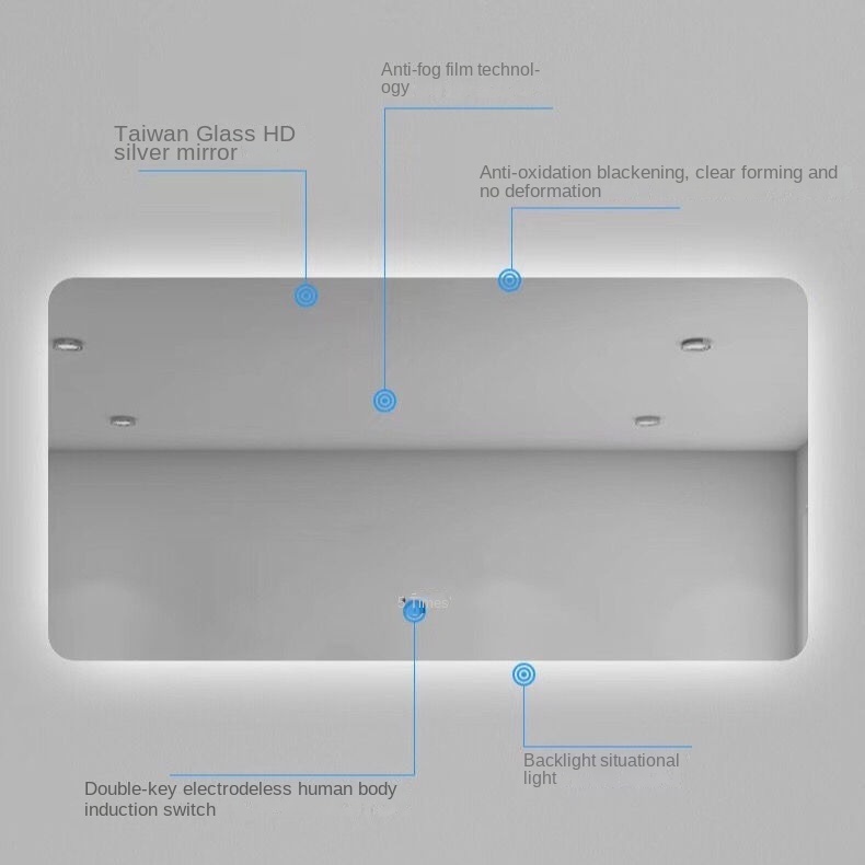 MNS Smart Mirror Led Light Bathroom Mirror Touch Screen Anti Fog Makeup Mirror Wall Mounted Bathroom Mirror